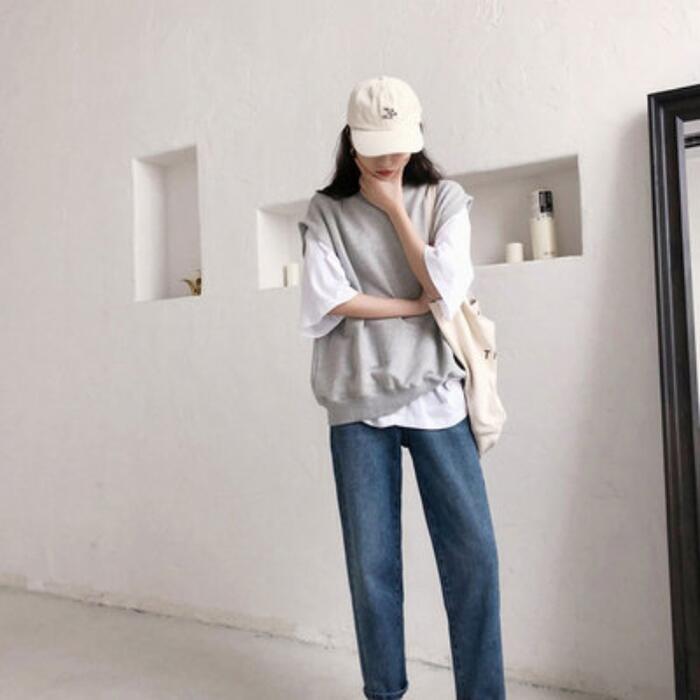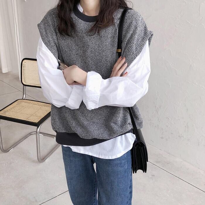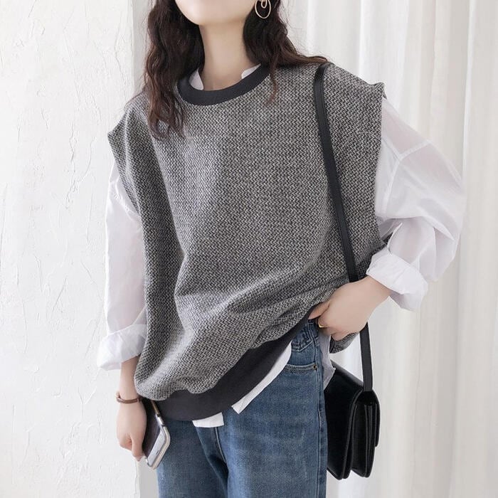 ゆるっとしたシルエットが可愛いオーバーサイズのニットベスト。