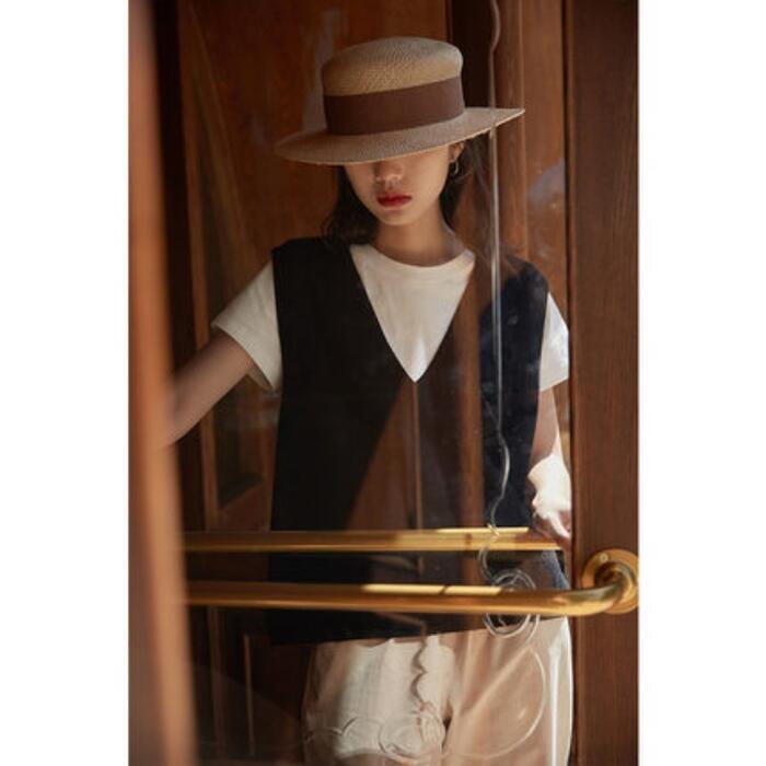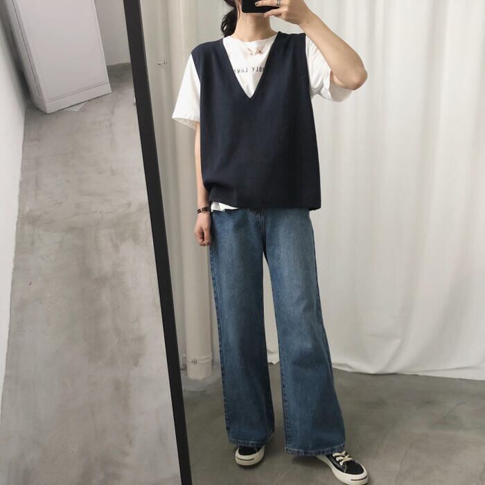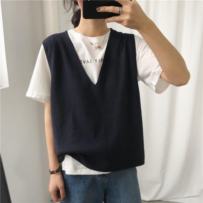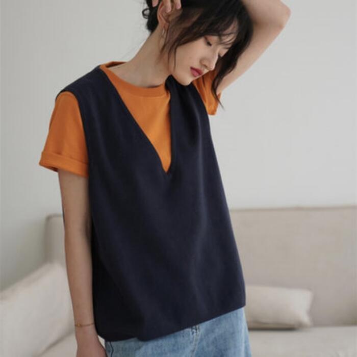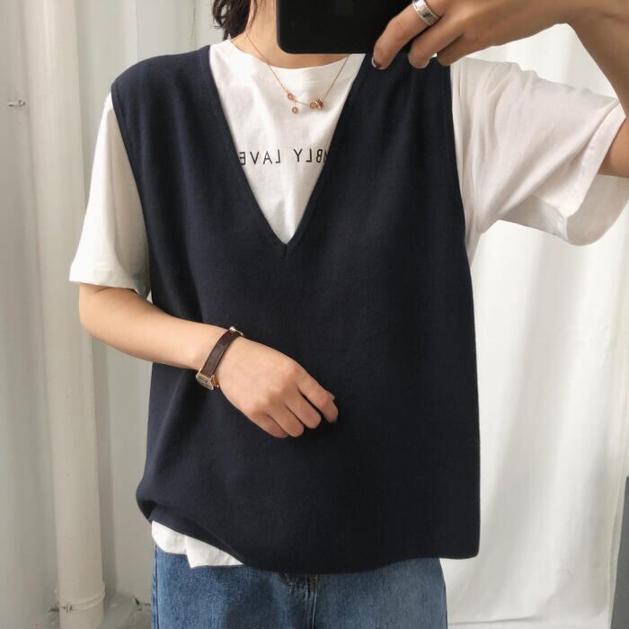 全2色 トップス ニット ベスト レイヤード レディース きれいめ カジュアル ノースリーブ おしゃれ 大人 可愛い フェミニン ゆったり 重ね着 こなれ感 シンプル ベーシック ネイビー 紺 ブラック 黒 春 夏 秋 20代 30代 40代 50代