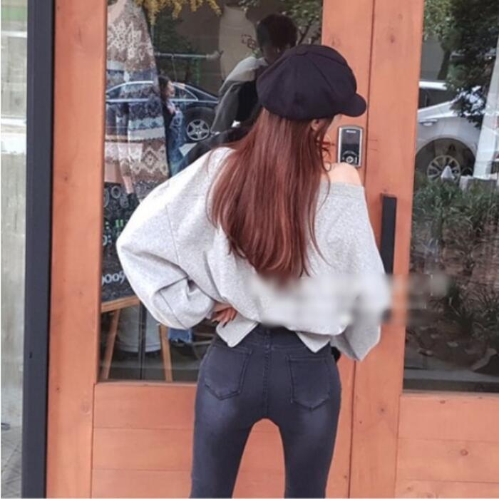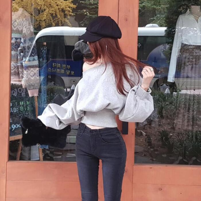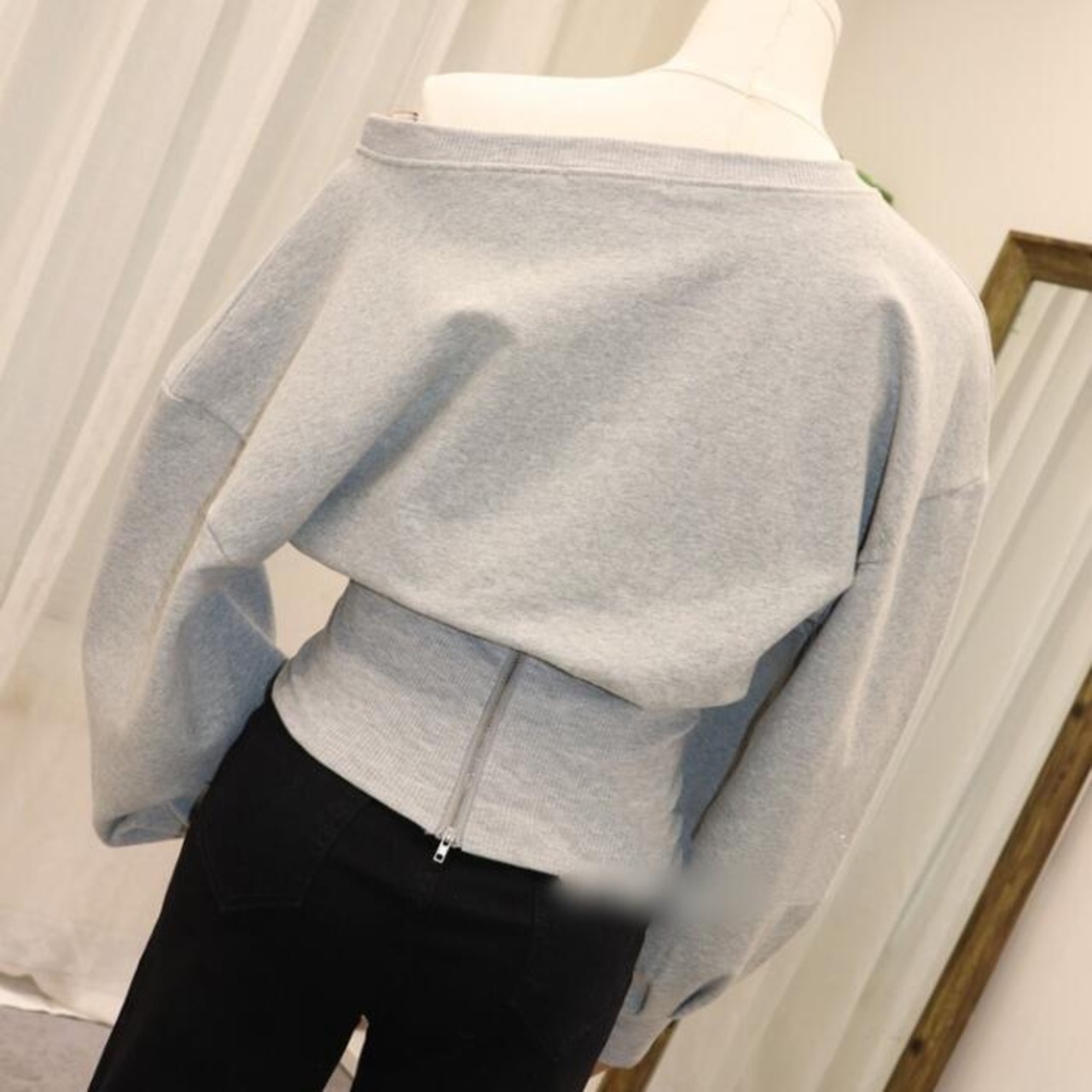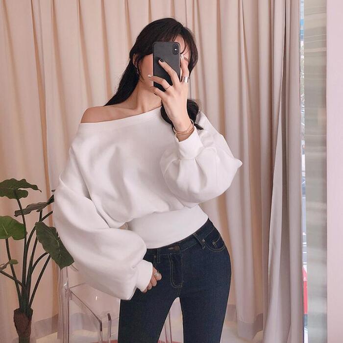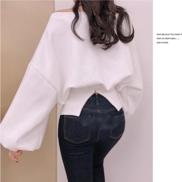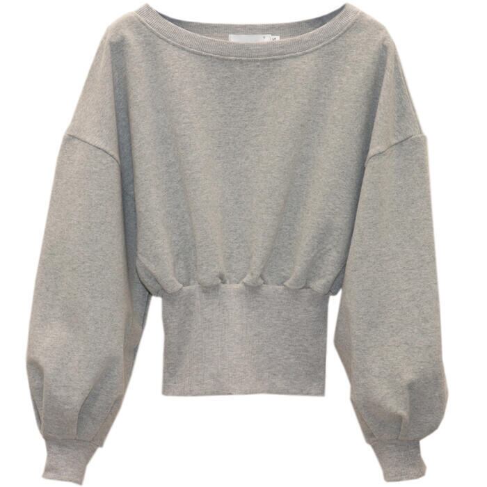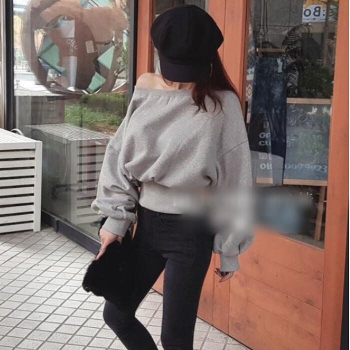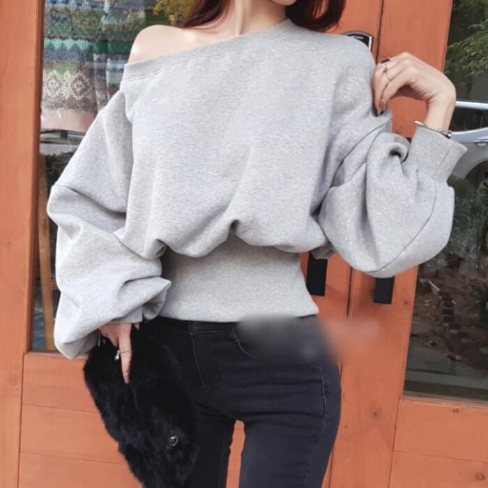 オフショルダーでも着られるスウェットトップス。