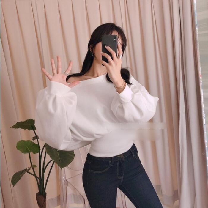 全2色 トップス スウェット カットソー Tシャツ パフスリーブ レディース きれいめ カジュアル 長袖 おしゃれ 大人 可愛い フェミニン ゆったり こなれ感 シンプル ベーシック グレー ホワイト 白 春 冬 秋 20代 30代 40代 50代