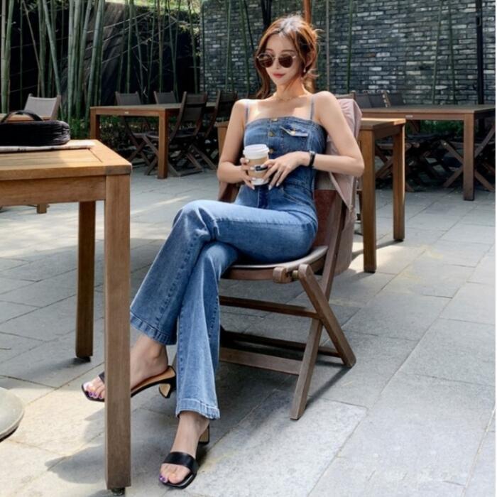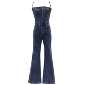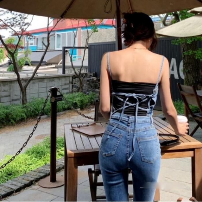 デニム オールインワン サロペット レディース パンツ カジュアル おしゃれ オーバーオール ハイウエスト ブーツカット ロング丈 レースアップ かっこいい 大人 可愛い ブルー 青 オールシーズン 春 夏 秋 20代 30代 40代 50代