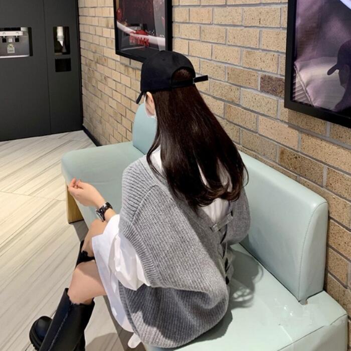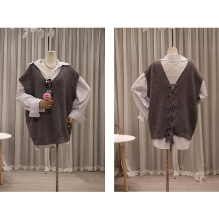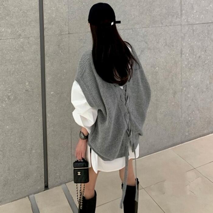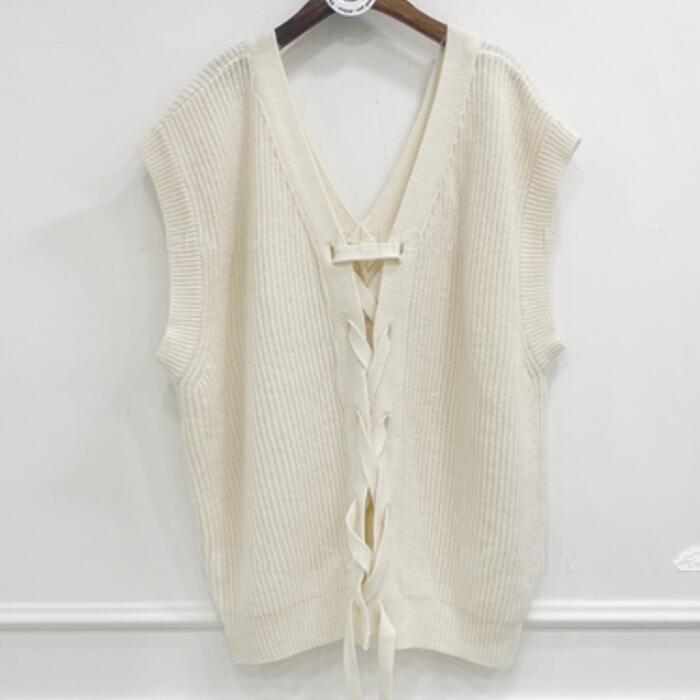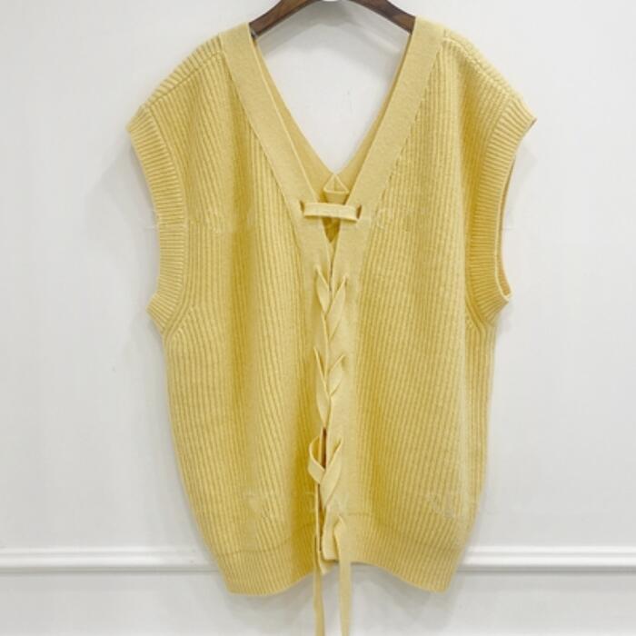 全4色 トップス ニット ベスト レースアップ レイヤード レディース きれいめ カジュアル ノースリーブ おしゃれ 大人 可愛い フェミニン ゆったり 重ね着 こなれ感 シンプル ベーシック グレー 春 夏 秋 20代 30代 40代 50代