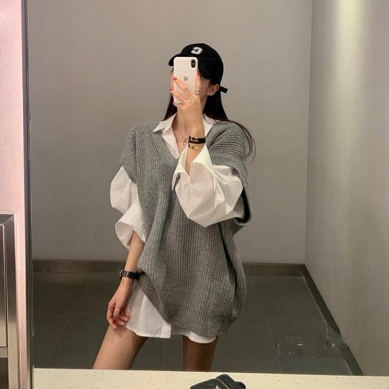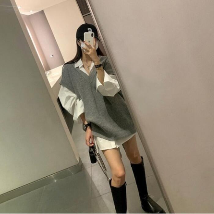 ゆるっとしたシルエットが可愛いオーバーサイズのニットベスト。