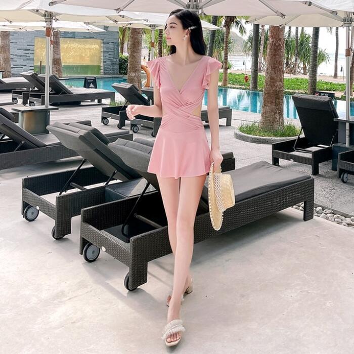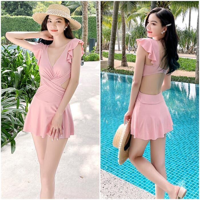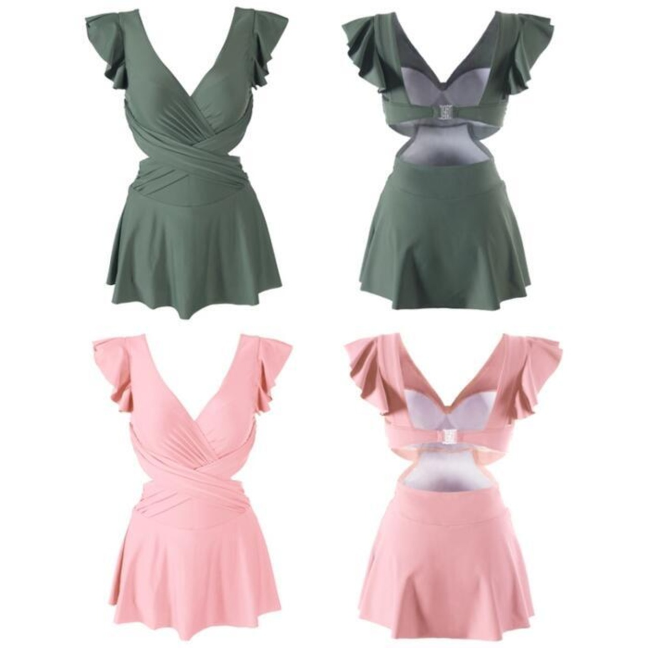 全2色 レディース 水着 ワンピース モノキニ ビキニ フリル おしゃれ スイムウェア 体形カバー リゾート 海 プール 夏 フェミニン きれいめ 大人 可愛い クロス 大きいサイズ ピンク グリーン 緑 20代 30代 40代 50代