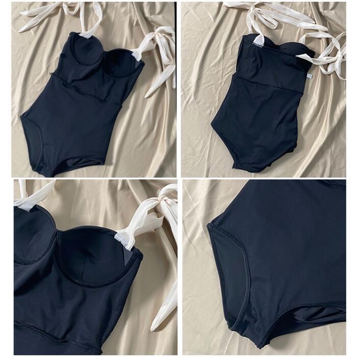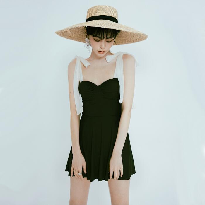レディース 水着 ワンピース ビスチェ リボン おしゃれ スイムウェア 体形カバー リゾート 海 プール 夏 フェミニン きれいめ 大人 可愛い クラシカル 大きいサイズ ブラック 黒 20代 30代 40代 50代