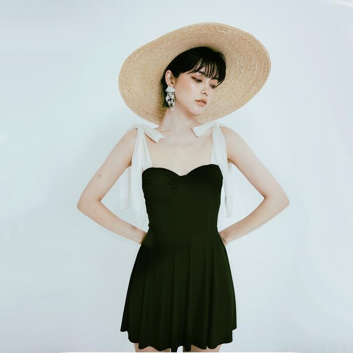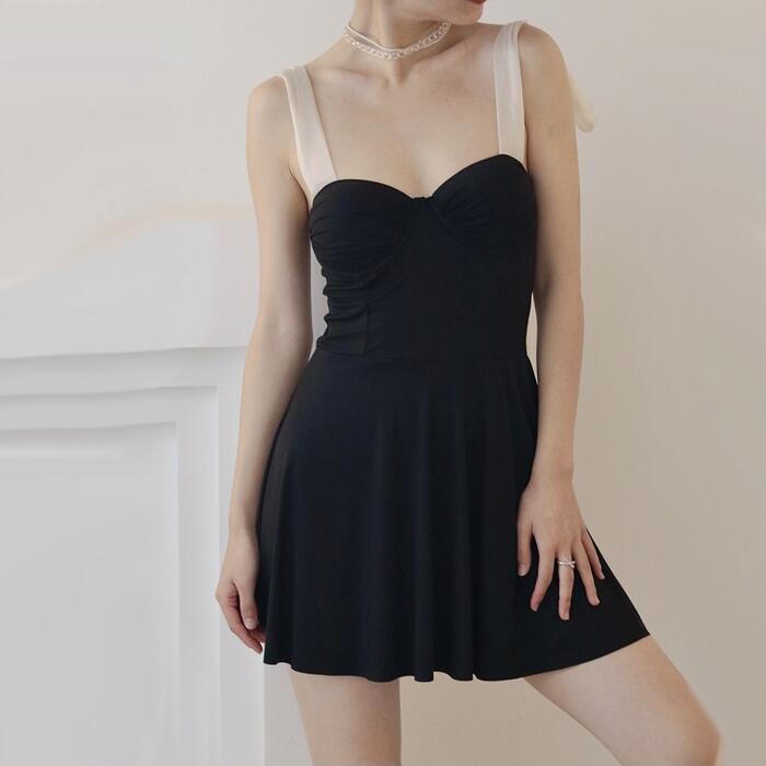クラシカルな雰囲気のビスチェ風ワンピース水着。