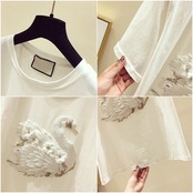 立体感のある白鳥の刺繍がポイントになった半袖Tシャツ。