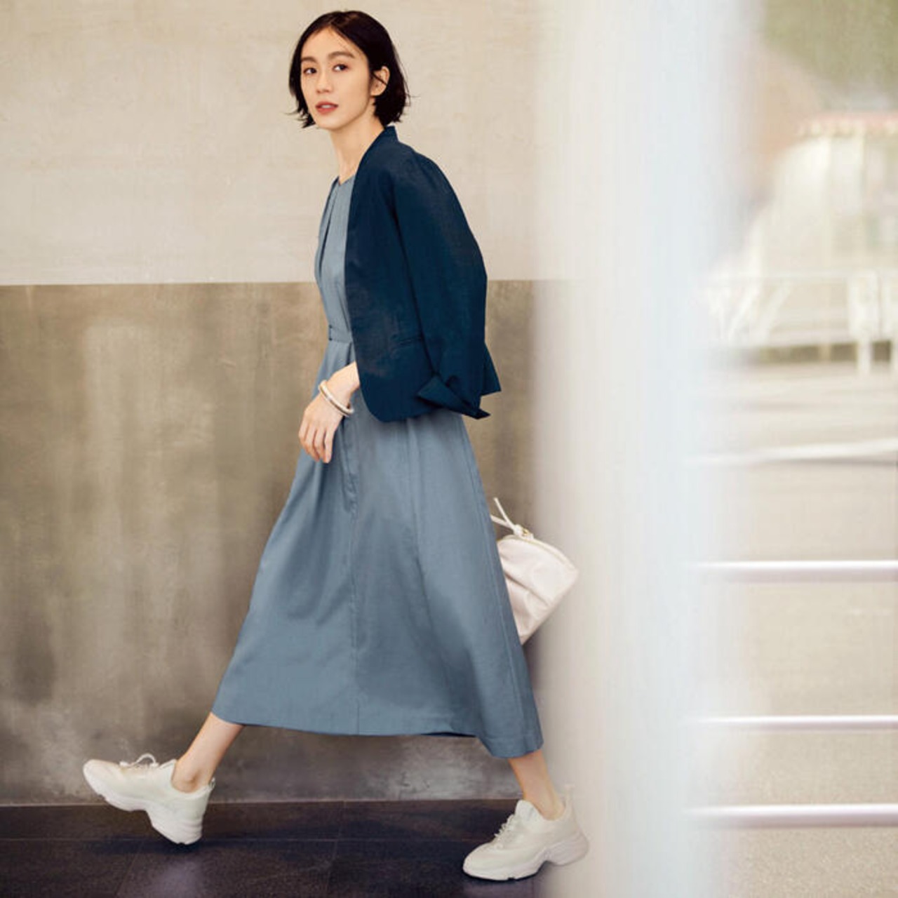 ウエストマークでスタイルアップも叶う大人フェミニンな一枚です♪