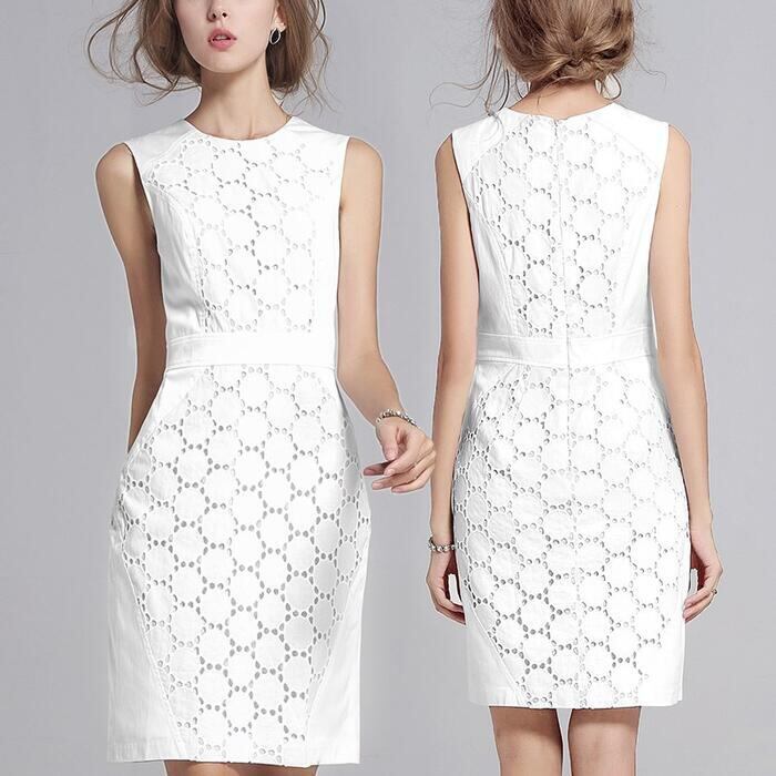 ワンピース お呼ばれ ひざ丈 ノースリーブ レース エレガント ドット レディース ワンピ ドレス きれいめ フェミニン ハイウエスト 大人 可愛い 大きいサイズ ショート丈 ホワイト 白 春 秋 夏 20代 30代 40代 50代