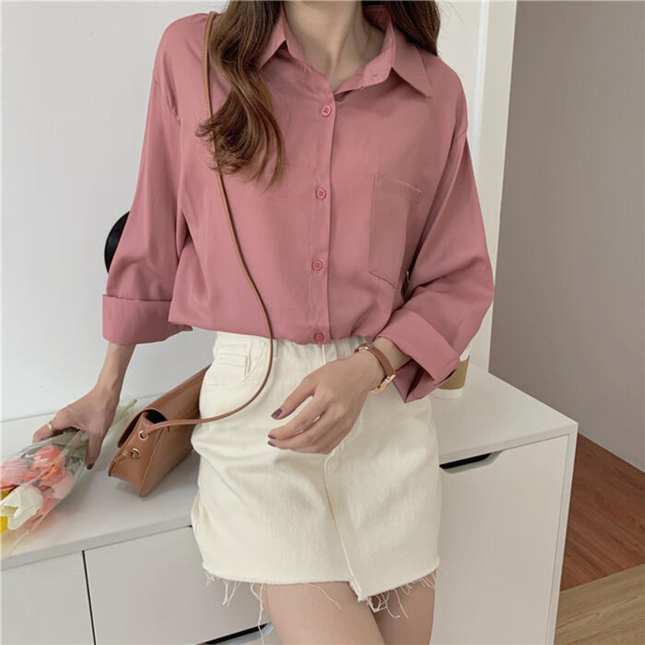 全8色 トップス シャツ ブラウス レディース きれいめ カジュアル 長袖 おしゃれ 大人 可愛い エレガント フェミニン シンプル ゆったり オフィス ピンク ブルー 青 グリーン 緑 ホワイト 白 グレー ネイビー ブラック 黒 春 冬 秋 20代 30代 40代 50代