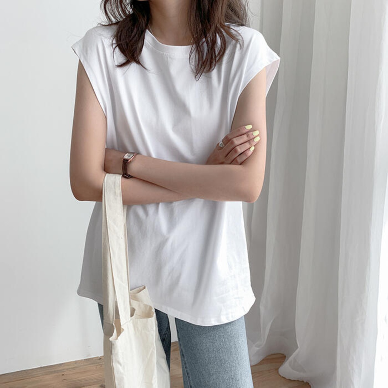 絶妙な袖丈がヘルシーな雰囲気のフレンチスリーブTシャツ。