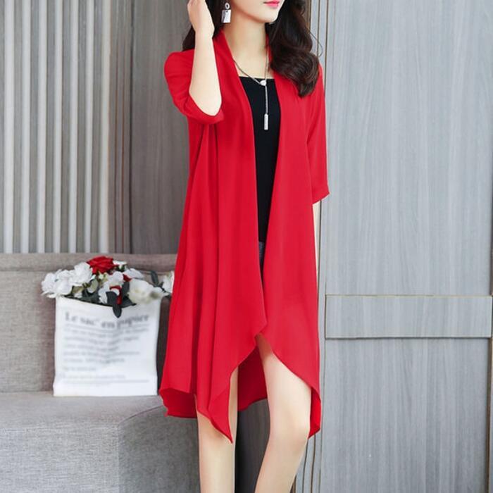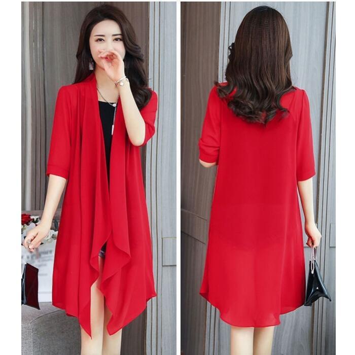 全5色 大きいサイズトップス カーディガン 羽織り シフォン アウター レディース 五分袖 きれいめ エレガント カジュアル 半袖 おしゃれ 大人 可愛い フェミニン シンプル レッド 赤 グリーン 緑 ブラック 黒 ベージュ ホワイト 白 春 夏 秋 20代 30代 40代 50代
