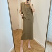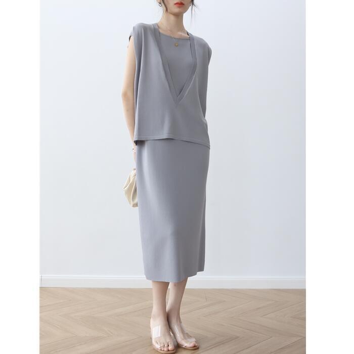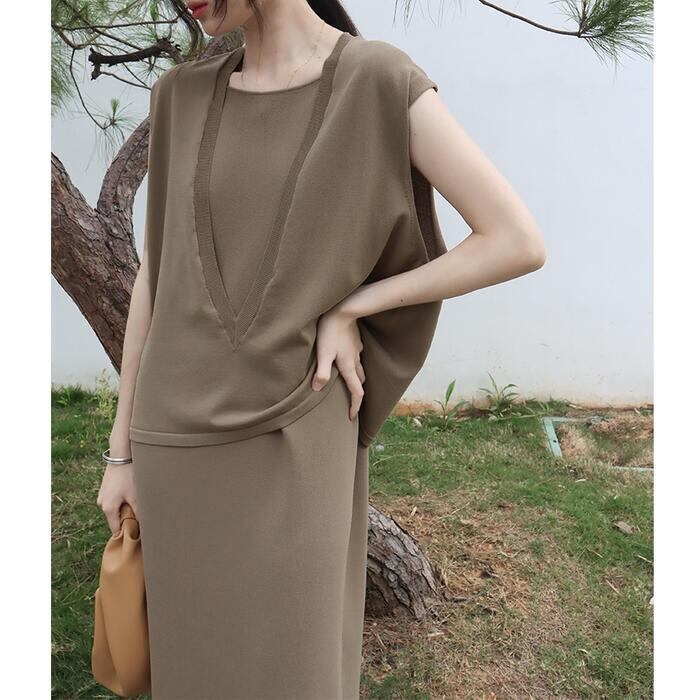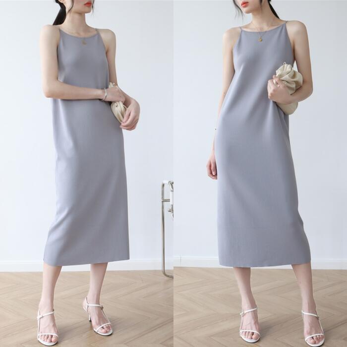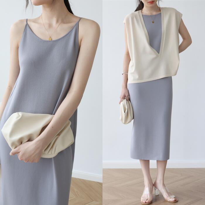 全4色 シンプルワンピース ニット ロングワンピ キャミワンピ レディース ノースリーブ エレガント きれいめ カジュアル ミモレ丈 おしゃれ こなれ感 大人 可愛い フェミニン ワンピ ドレス カーキ ホワイト 白 グレー ブラック 黒 春 秋 夏 20代 30代 40代 50代