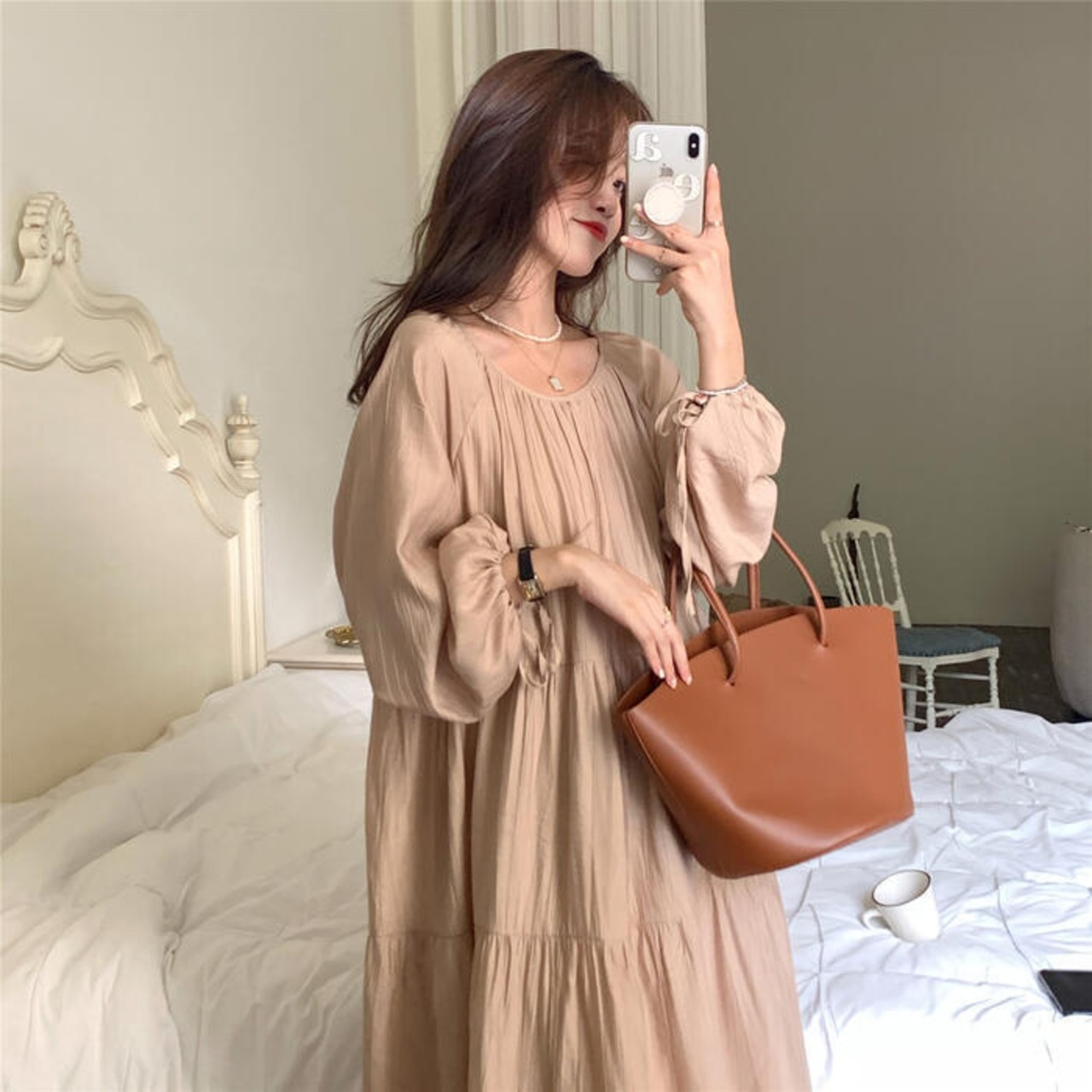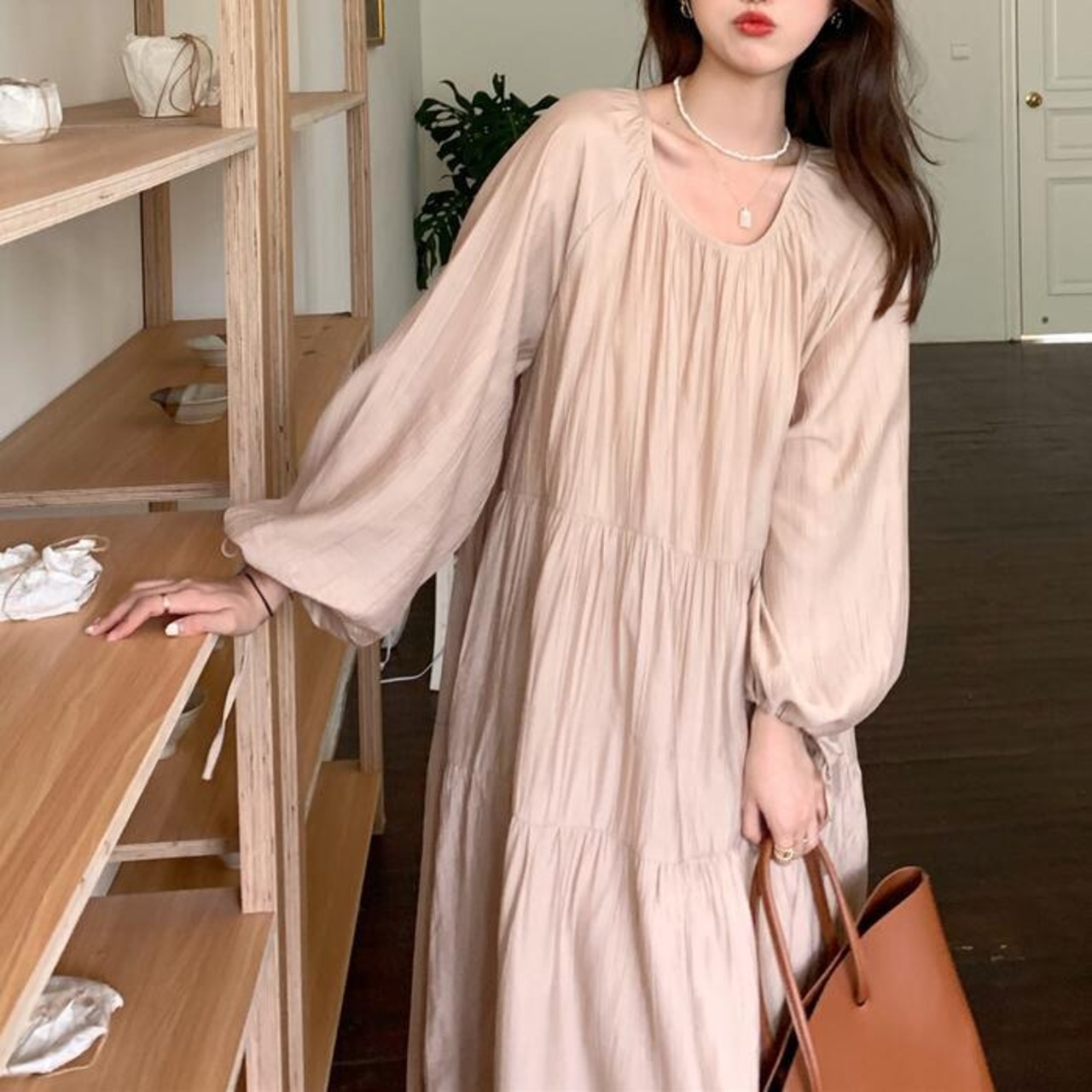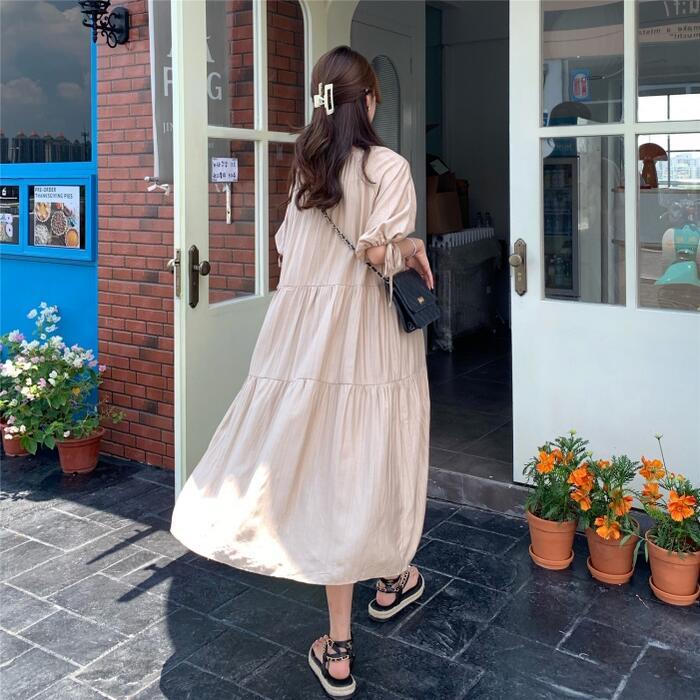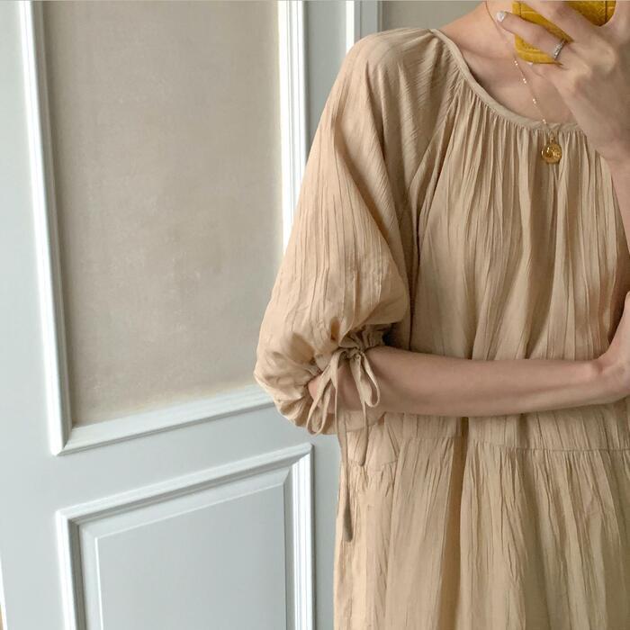 全2種 ティアード ワンピース ロングワンピ レディース 袖あり リボン 半袖 長袖 きれいめ カジュアル ミモレ丈 おしゃれ ゆったり 体型カバー ナチュラル 大人 可愛い ワンピ ドレス ベージュ 春 秋 夏 20代 30代 40代 50代