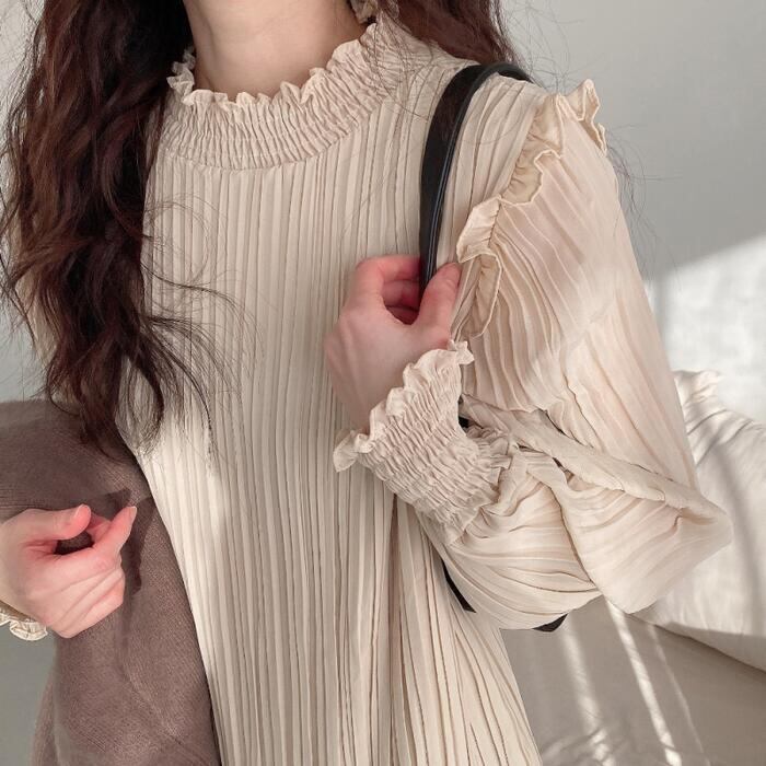 控えめなフリルも大人可愛いポイントに。