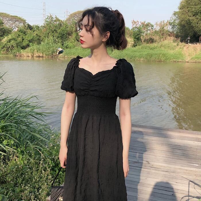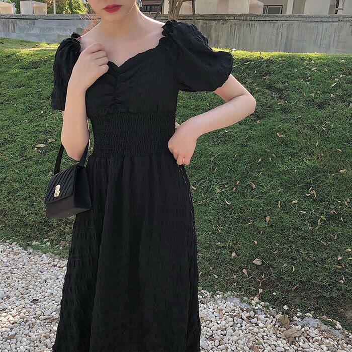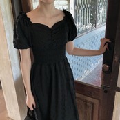 クラシカルな雰囲気のパフスリーブワンピース。