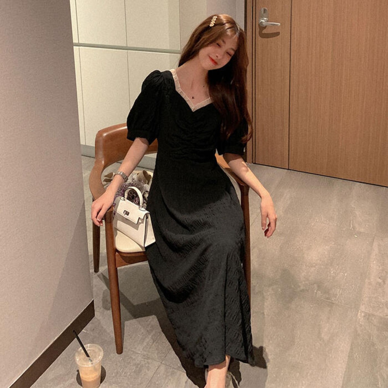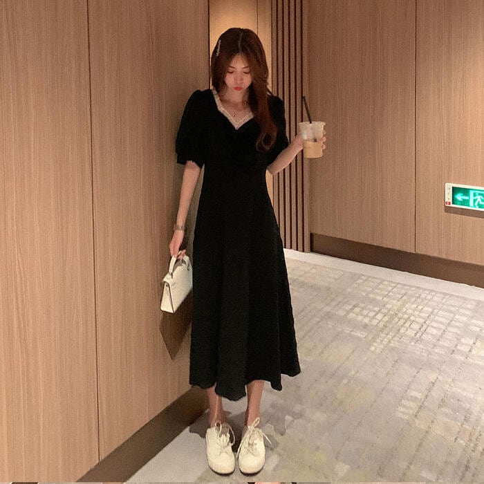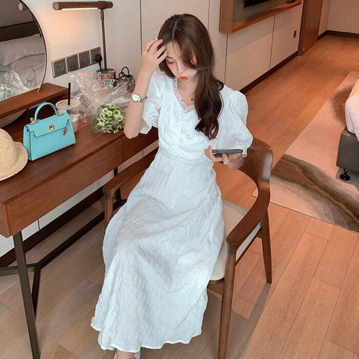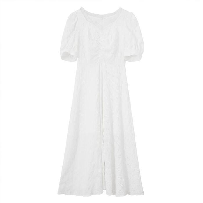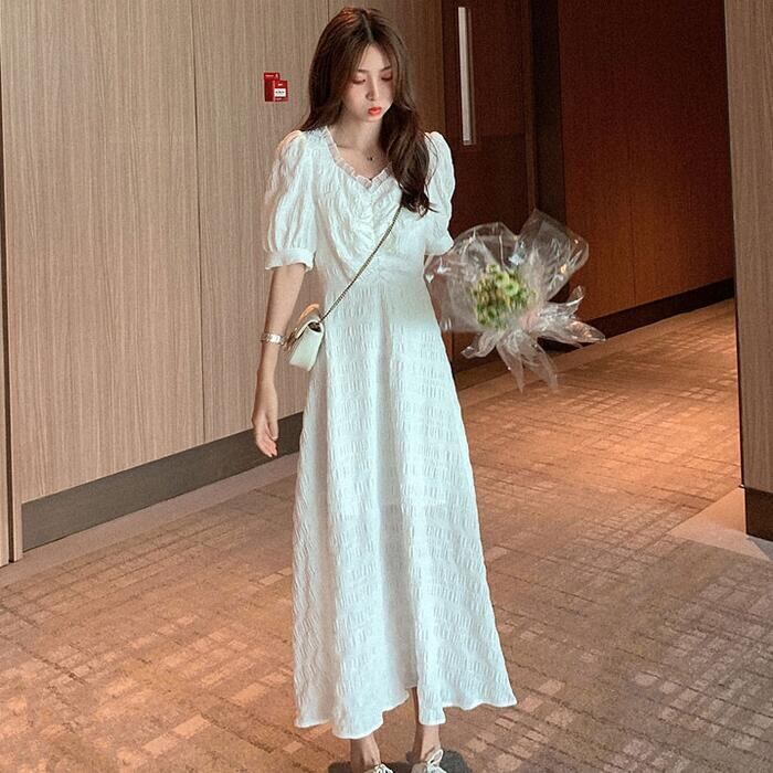 全2色 大きいサイズワンピース ロングワンピ リンクル レディース 袖あり パフスリーブ フリル 半袖 きれいめ カジュアル ロング丈 おしゃれ ゆったり 体型カバー ナチュラル 大人 可愛い ワンピ ドレス ホワイト 白 ブラック 春 秋 夏 20代 30代 40代 50代