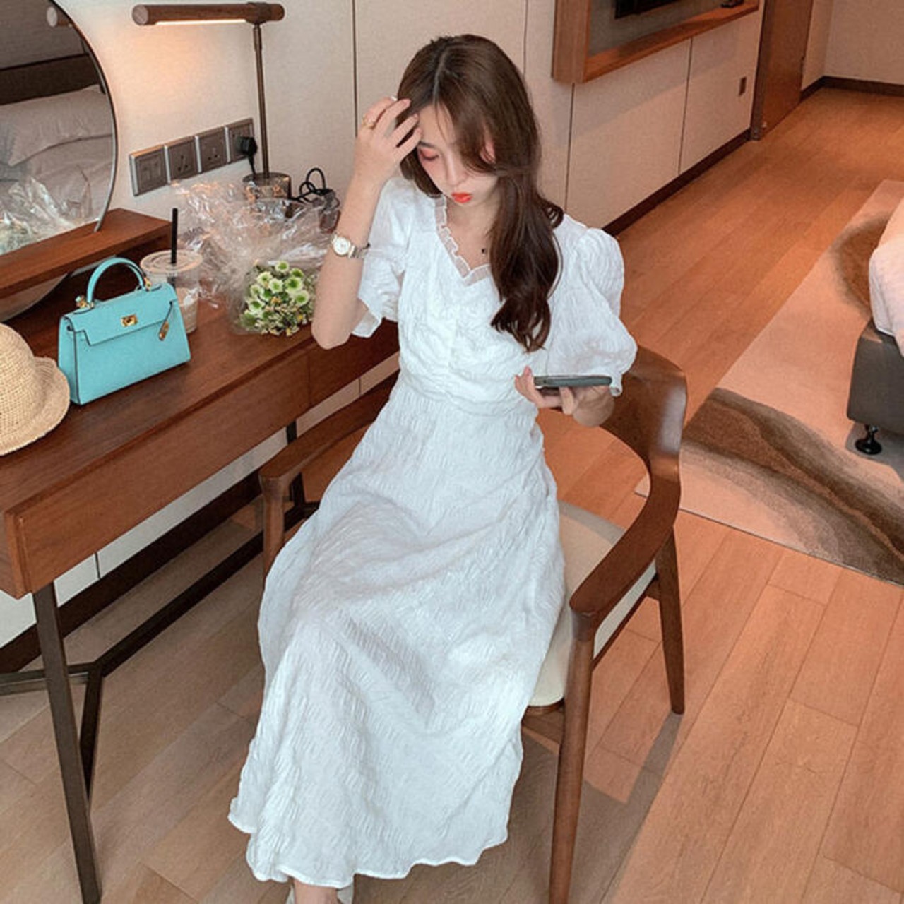 やわらかな風合いのリンクル生地を使ったワンピース。