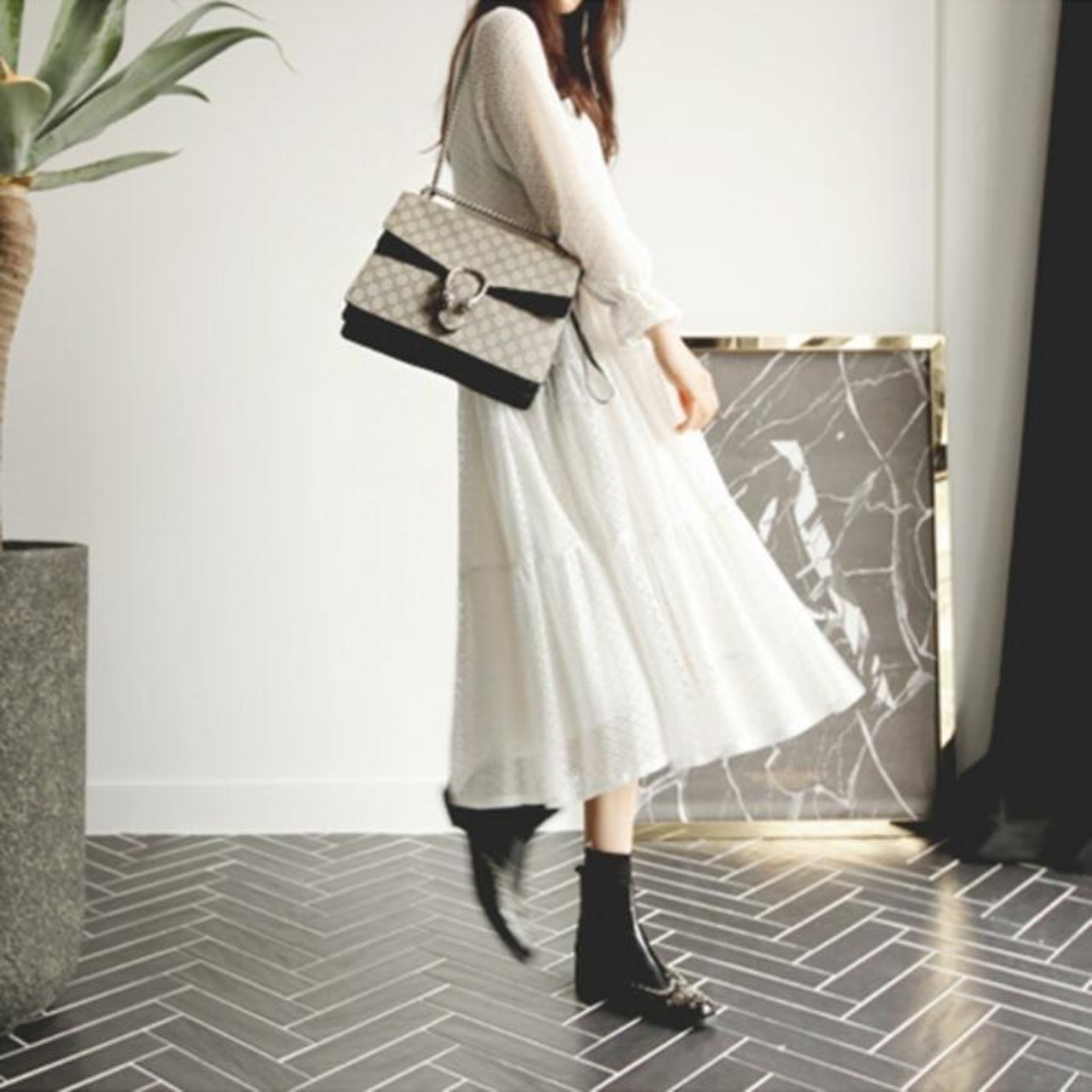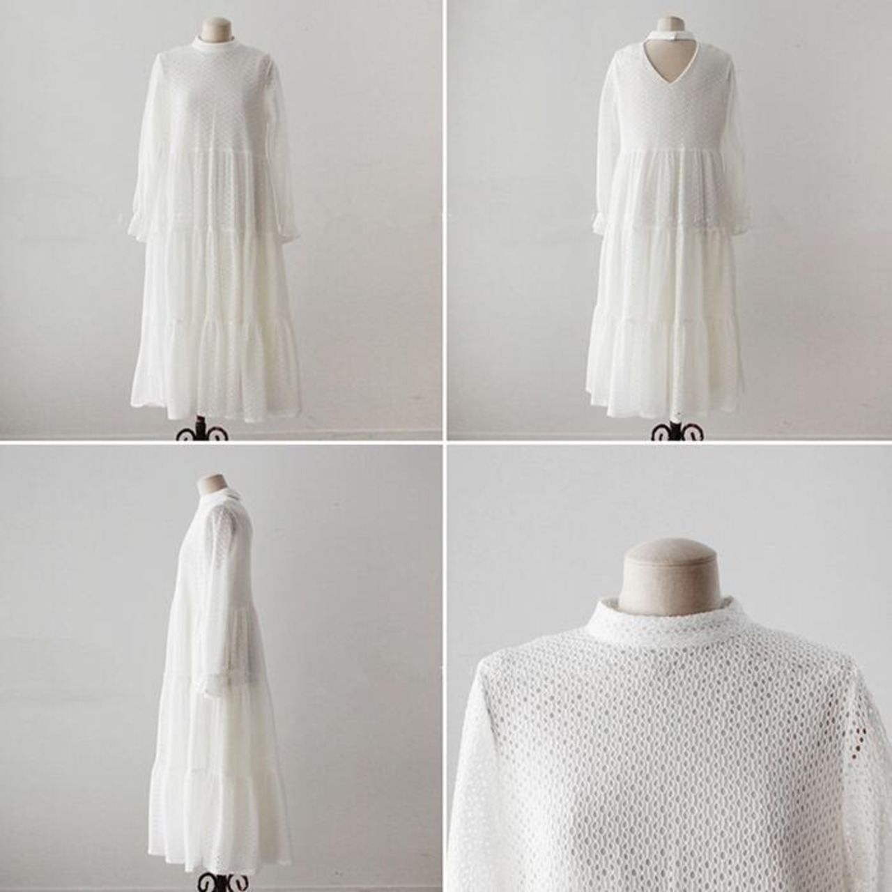 ティアード ワンピース レース ロングワンピ レディース 袖あり きれいめ カジュアル ミモレ丈 長袖 おしゃれ 大人 可愛い ワンピ ドレス ゆったり 体型カバー フェミニン 大きいサイズ ホワイト 白 春 秋 夏 20代 30代 40代 50代