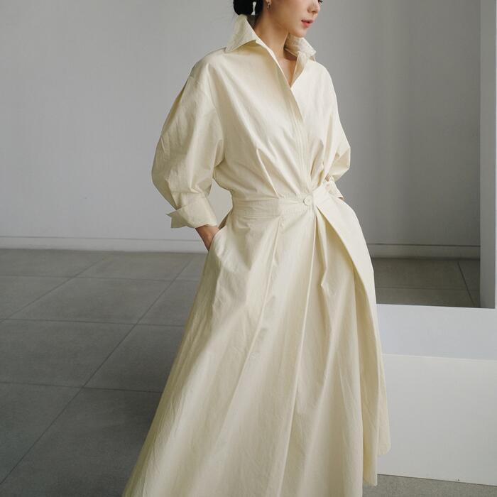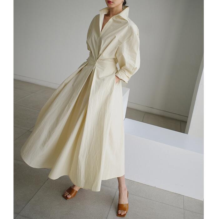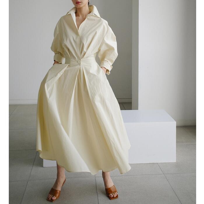 スキッパーデザインのシャツワンピース。