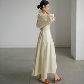ゆったりカジュアルな雰囲気ながらも、ウエストをシェイプさせ女性らしいシルエットに。