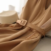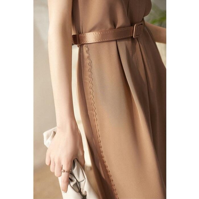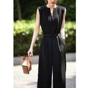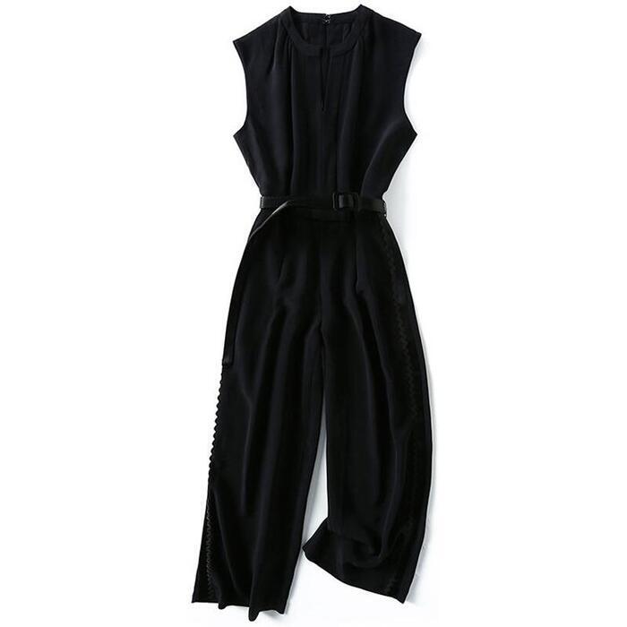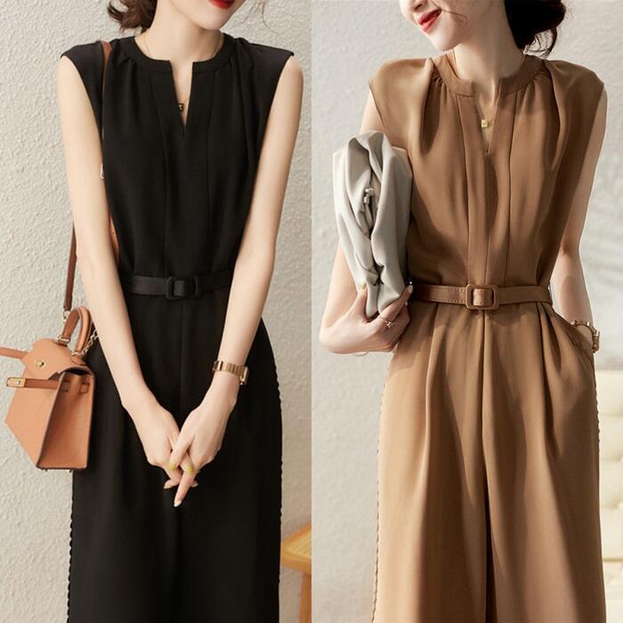 ベルト付きのノースリーブオールインワン。