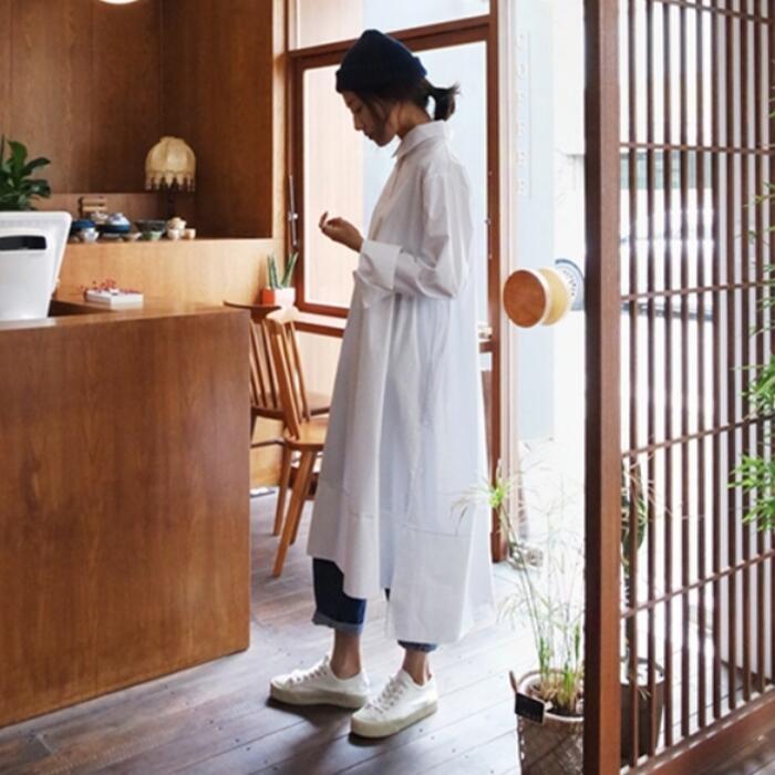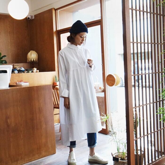 ビッグシルエットがトレンド感のあるシャツワンピース。