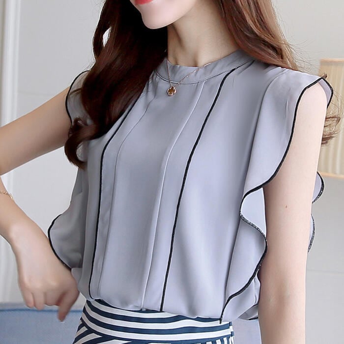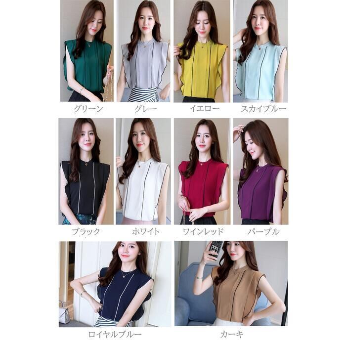 全10色 大きいサイズ きれいめトップス シャツ ブラウス パイピング 配色 半袖 レディース カジュアル ラッフル フリル おしゃれ 上品 大人 可愛い パープル ブルー イエロー レッド ブラック 黒 ホワイト 白 ネイビー グレー グリーン ベージュ 春 夏 秋 20代 30代 40代 50代