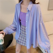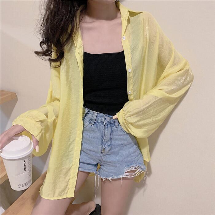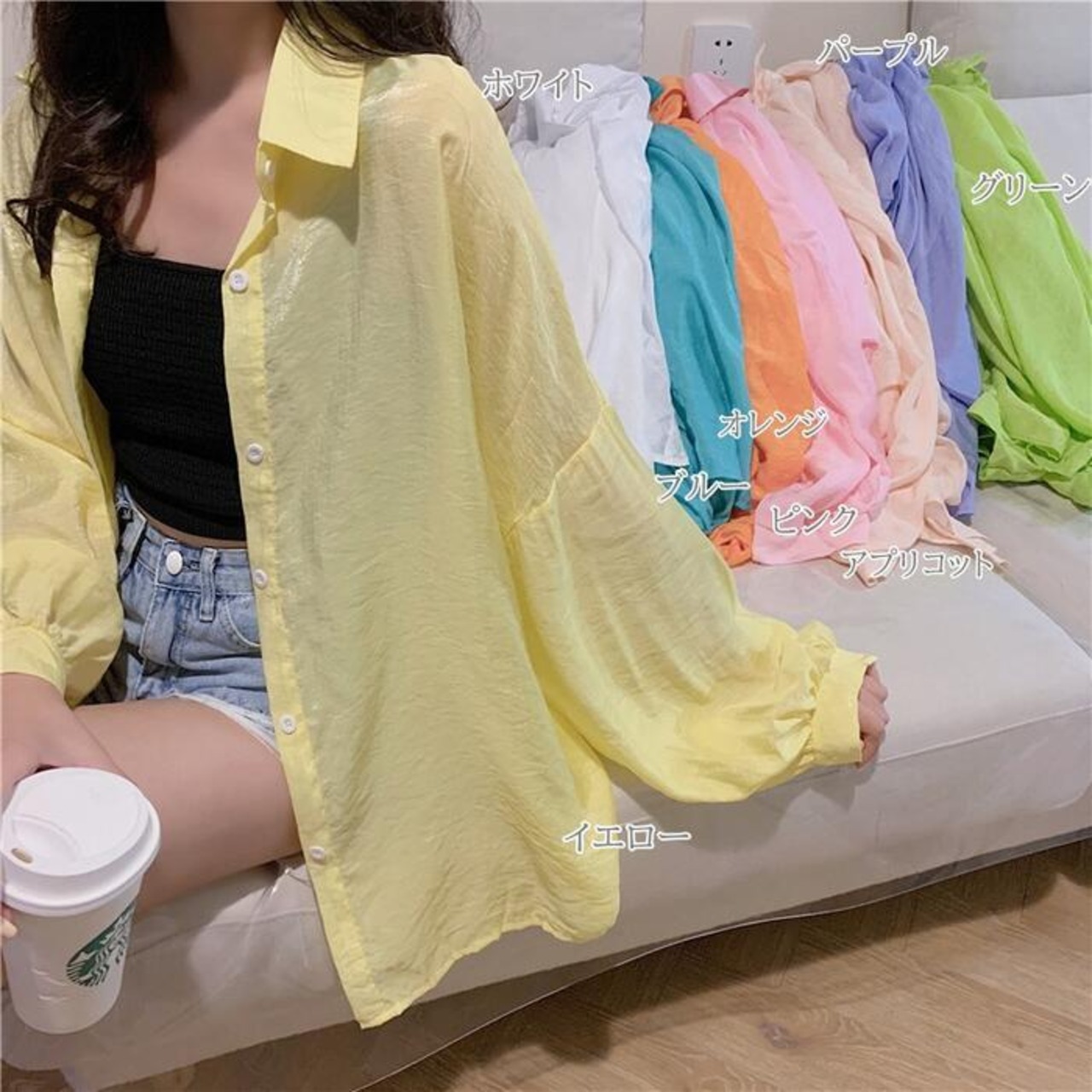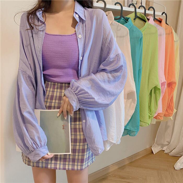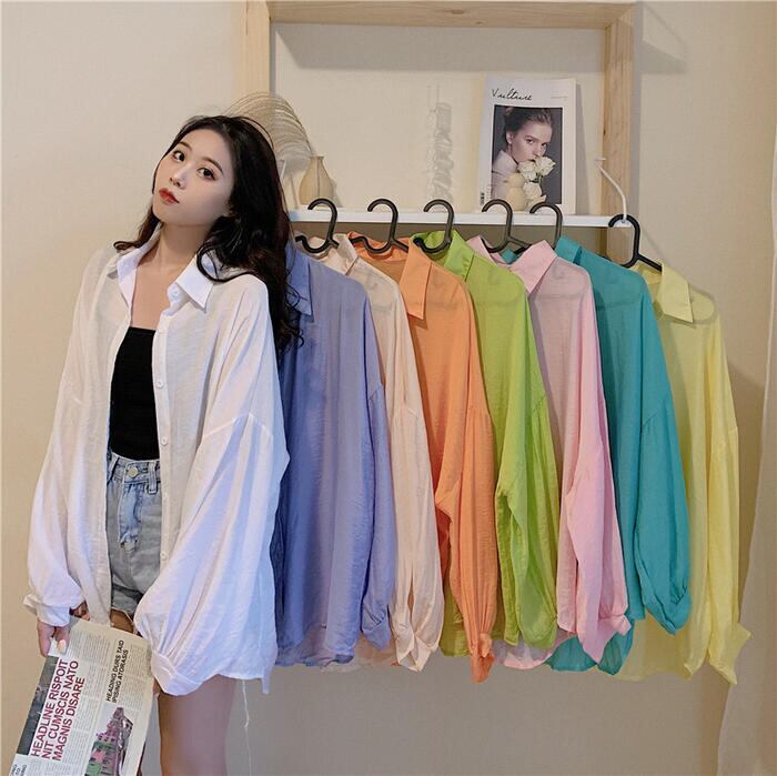 全8色 オーバーサイズ ゆったりトップス シャツ ブラウス 日焼け防止 羽織り カーディガン 長袖 レディース きれいめ カジュアル 薄手 シアー 透け感 おしゃれ ホワイト 白 ピンク グリーン イエロー ブルー ベージュ オレンジ パープル 春 夏 秋 20代 30代 40代 50代