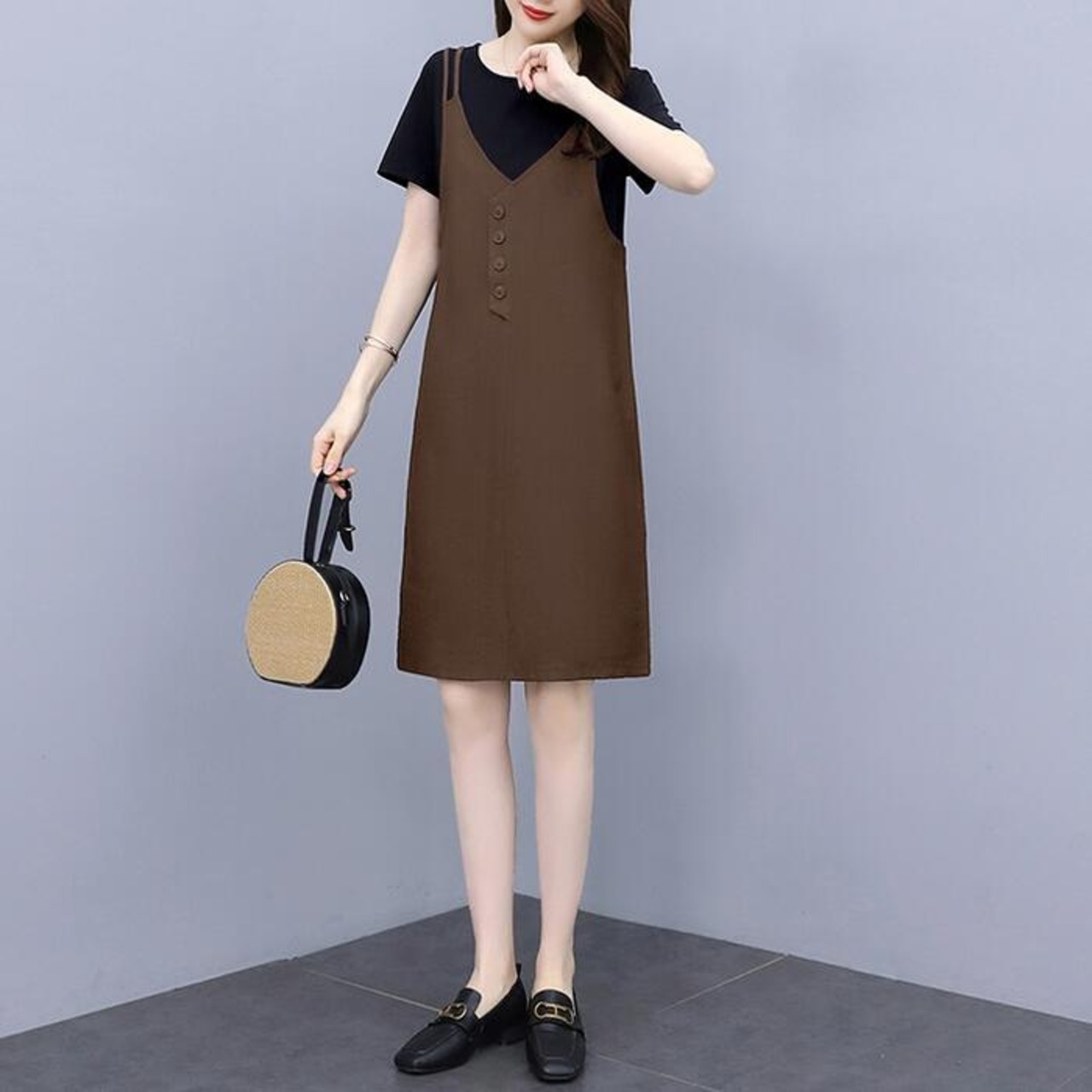 Tシャツにキャミワンピを合わせたようなレイヤード風ワンピース。