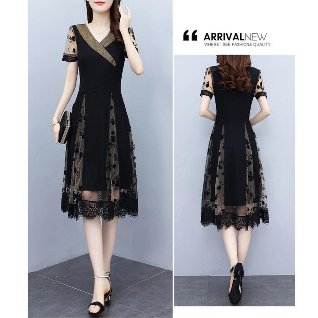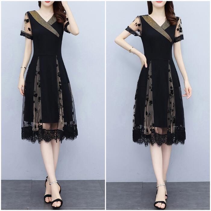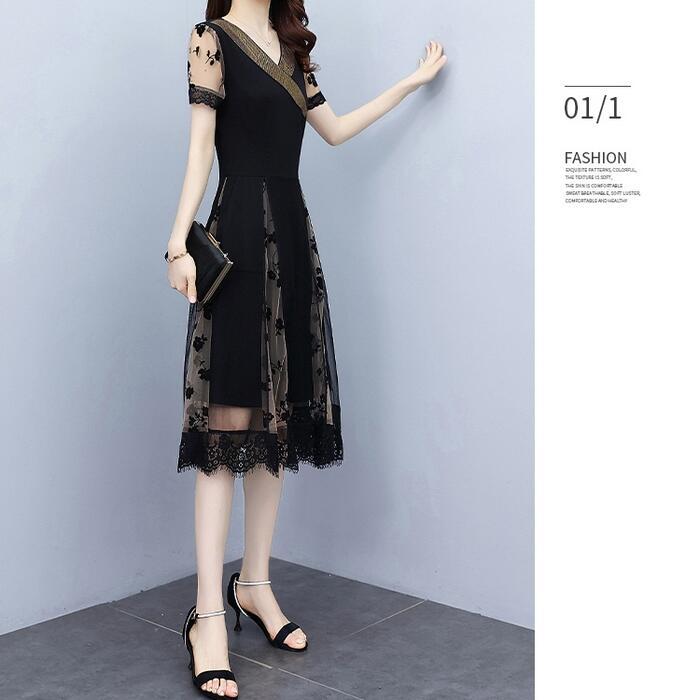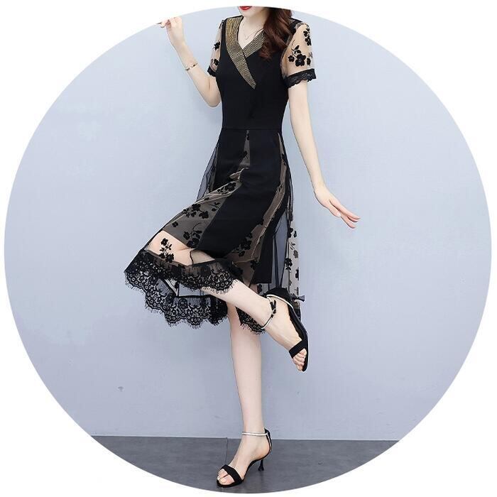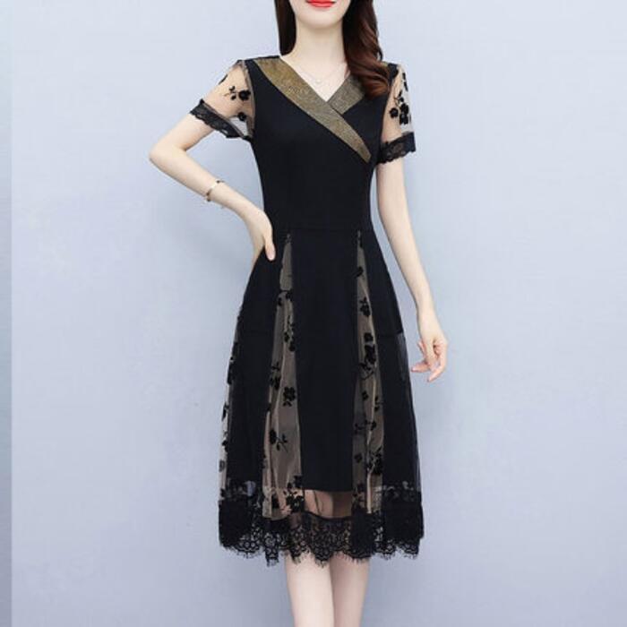 大きいサイズワンピース ロングワンピ 袖あり 花柄 エレガント きれいめ カジュアル 半袖 ミモレ丈 シアー おしゃれ レディース 大人 可愛い ワンピ ドレス フェミニン Vネック シフォン ハイウエスト 透け感 お呼ばれ 黒 春 秋 夏 20代 30代 40代 50代