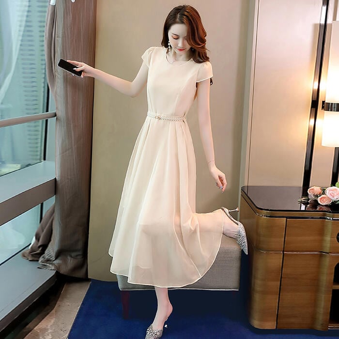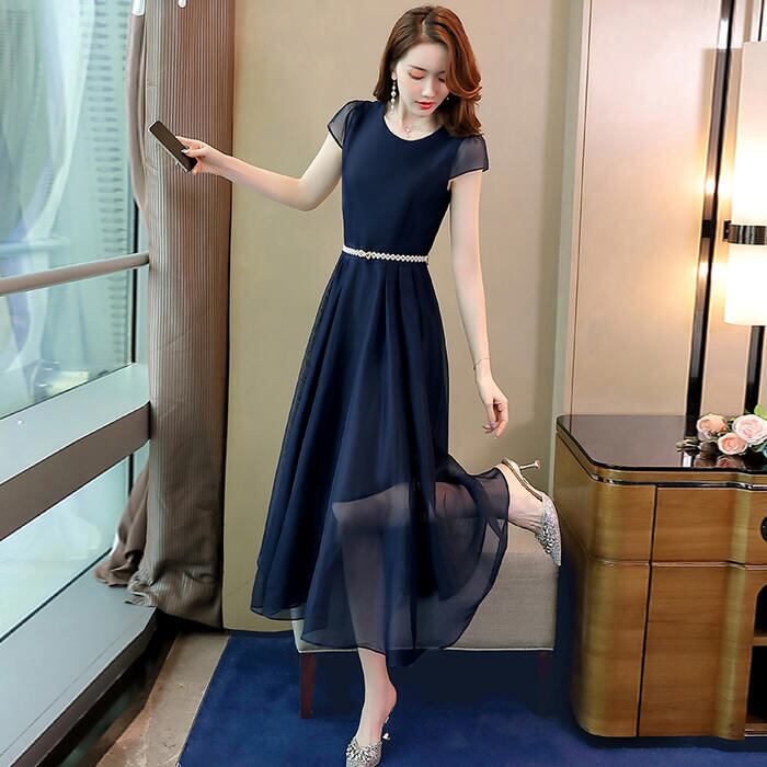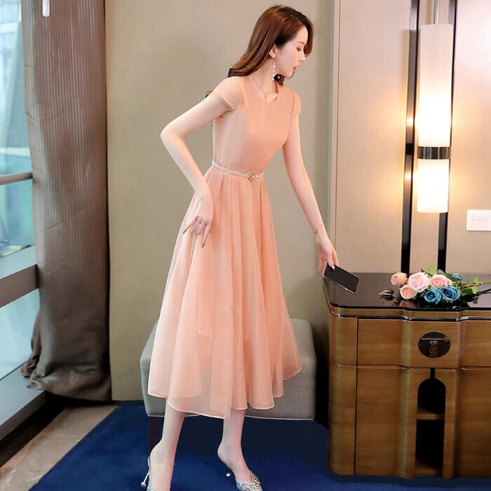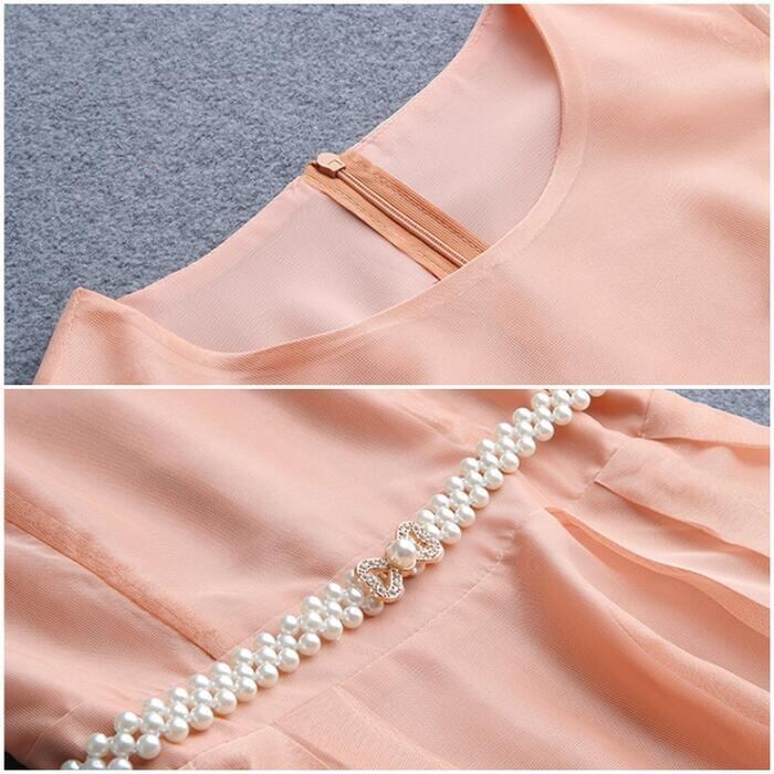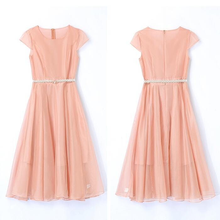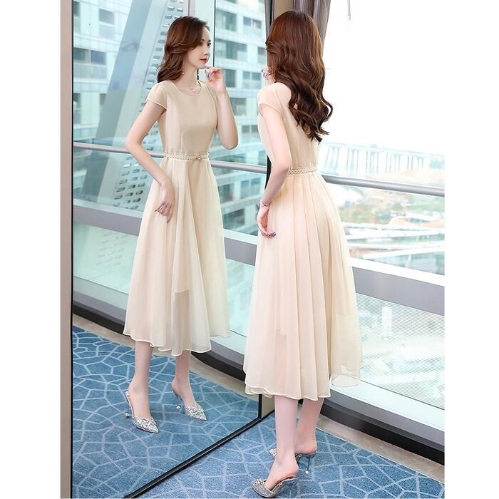 全3色 大きいサイズ結婚式 ワンピース ロングワンピ 袖あり パール ハイウエスト ミモレ丈 エレガント きれいめ レディース ドレス 半袖 フォーマル セレモニー 発表会 パーティー 大人 可愛い クラシカル ピンク ネイビー ベージュ 春 秋 夏 20代 30代 40代 50代