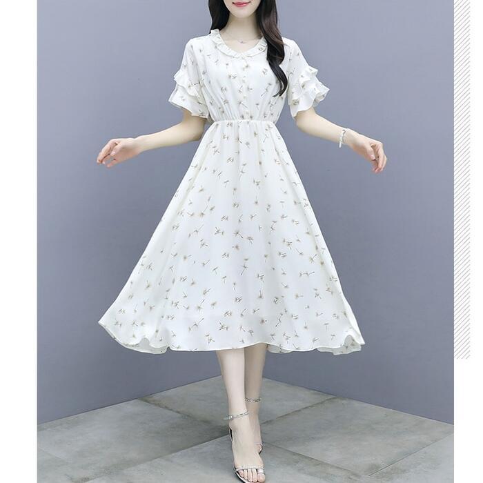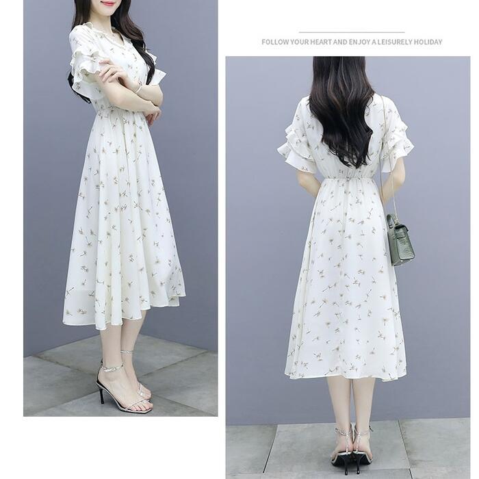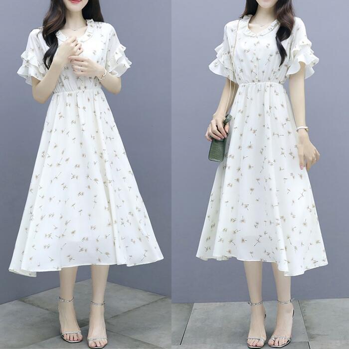 優しいフラワープリント柄のシフォンワンピース。