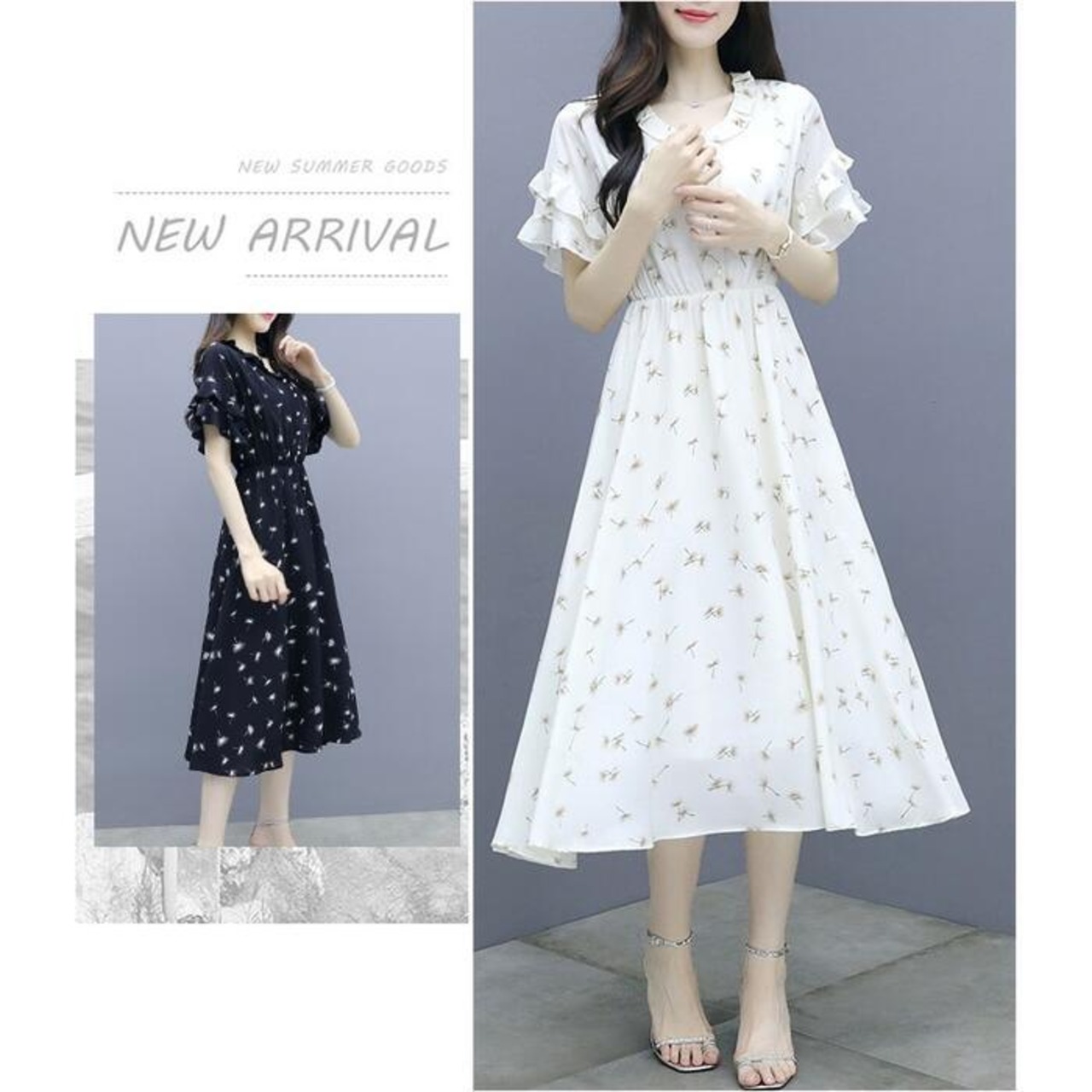 袖はフリルデザインでさりげなく二の腕カバー。