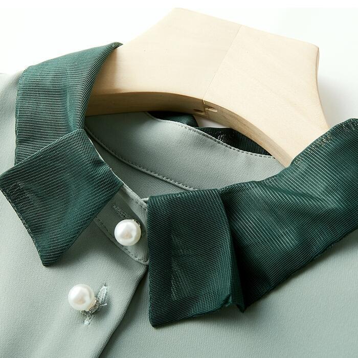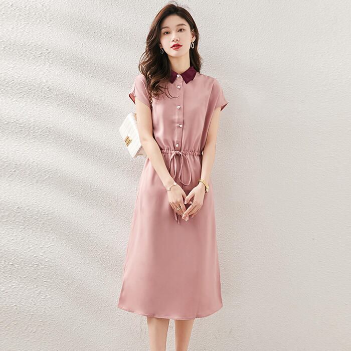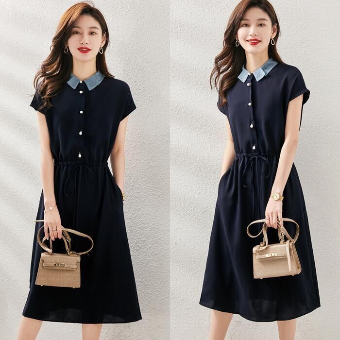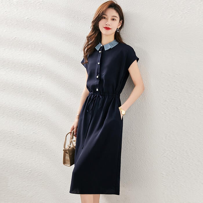 襟の配色デザインがポイントのワンピース。