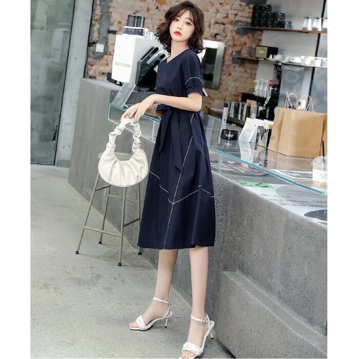 ステッチデザインがアクセントになったシンプルなワンピース。