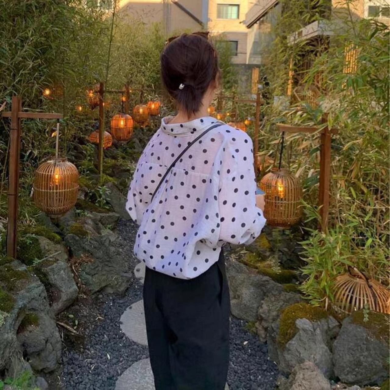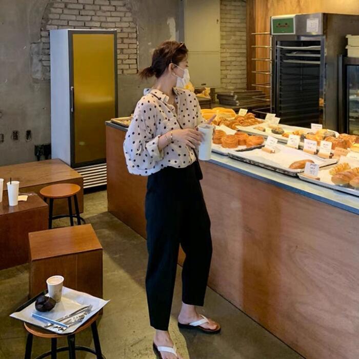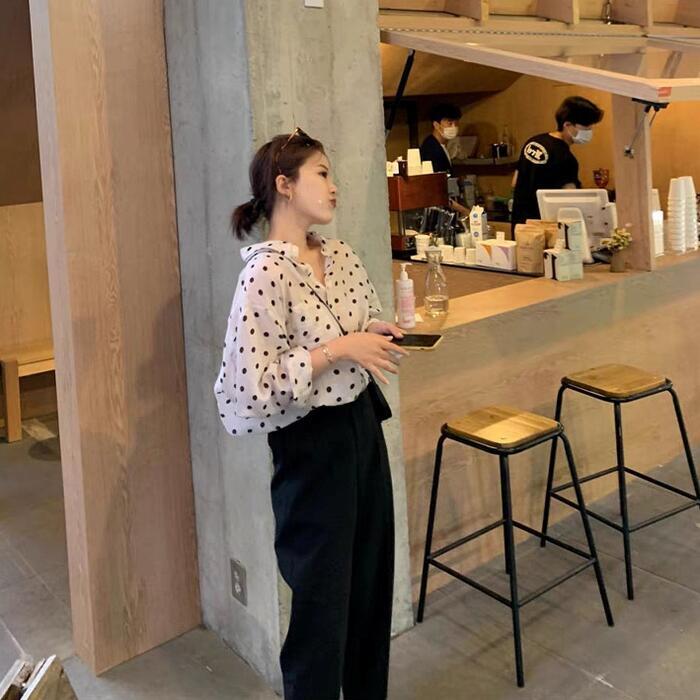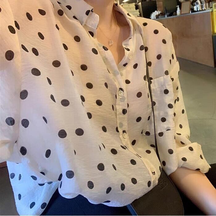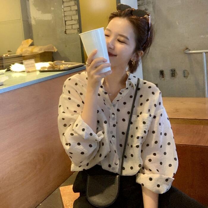薄手で軽い着心地のドット柄シャツ。