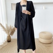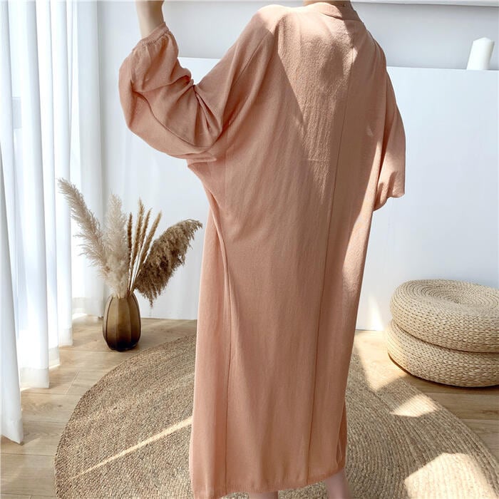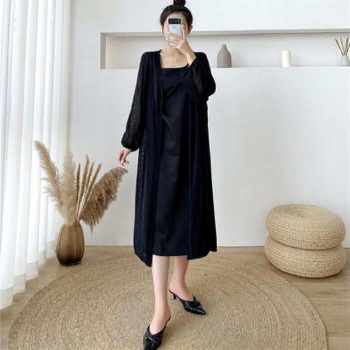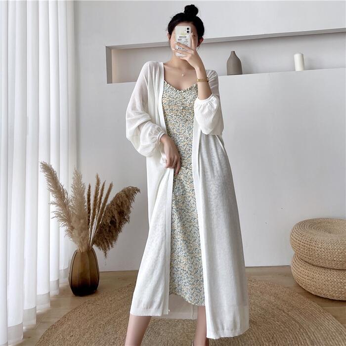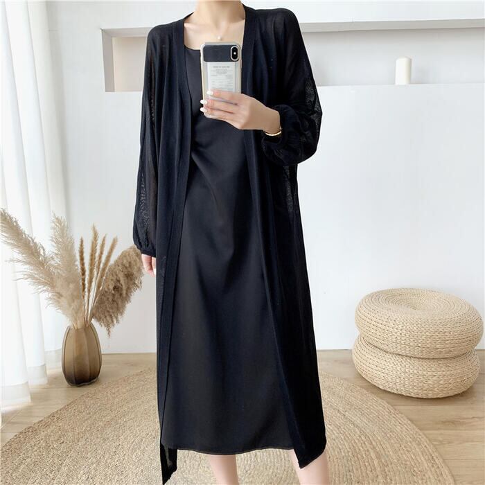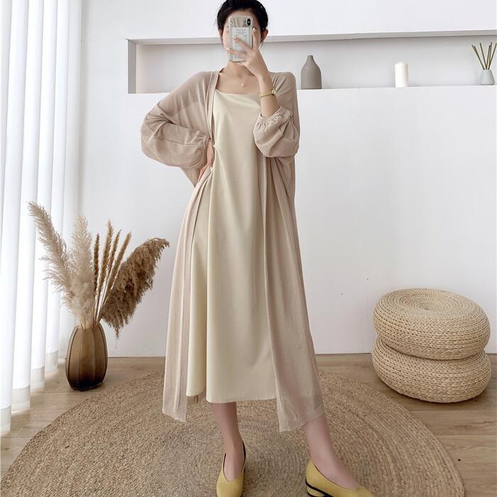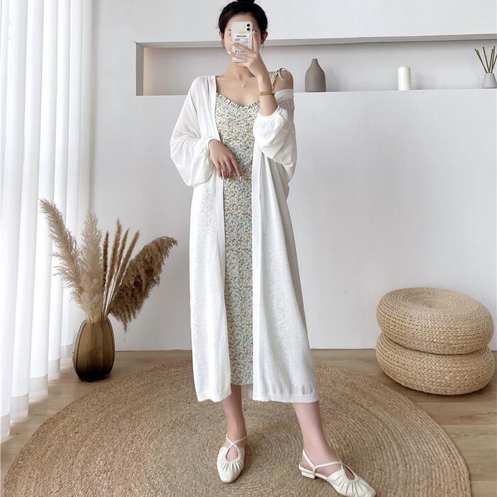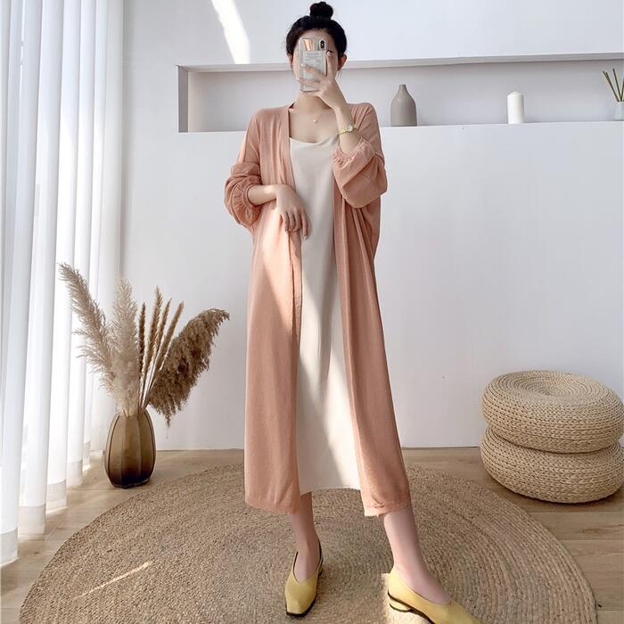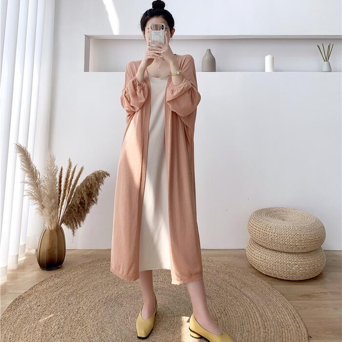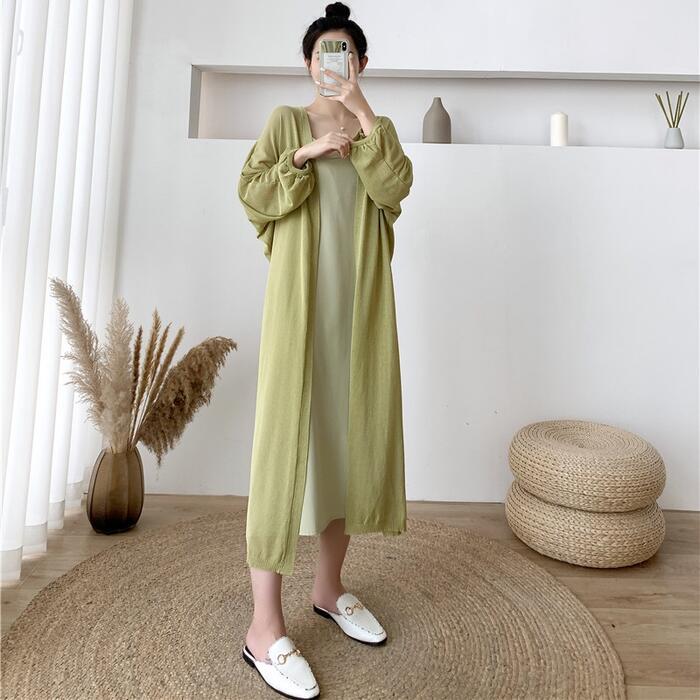 薄手で軽い着心地のロングニットカーディガン。