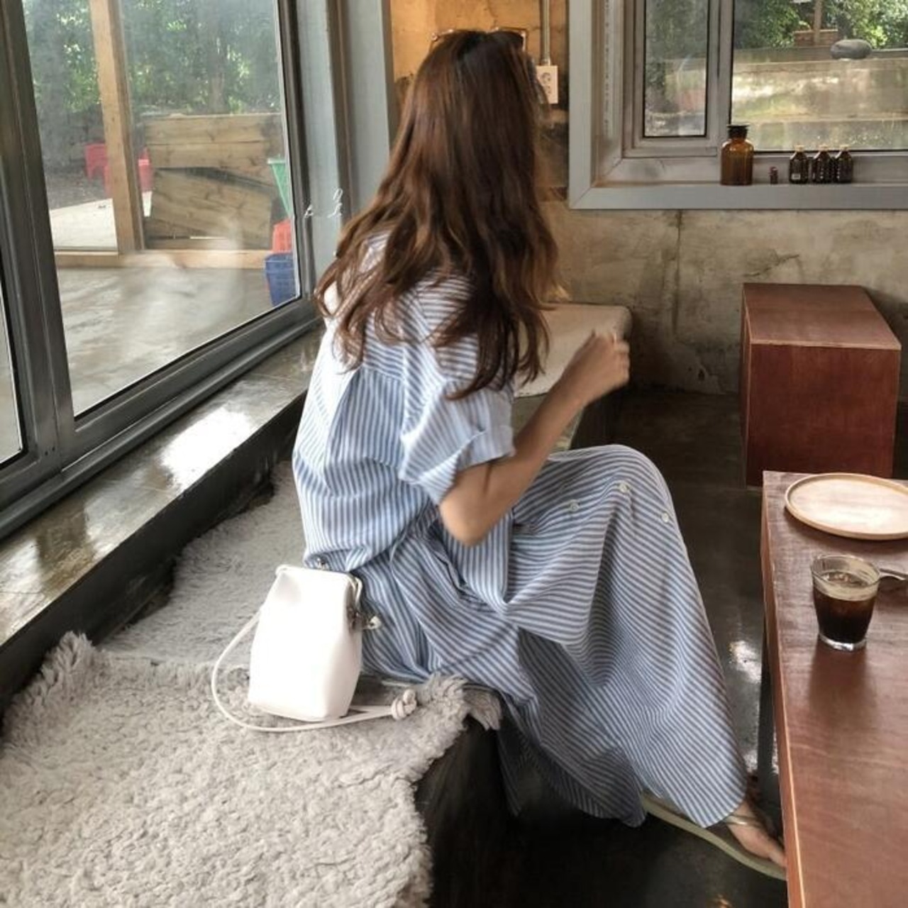 爽やかなストライプ柄のシャツワンピース。