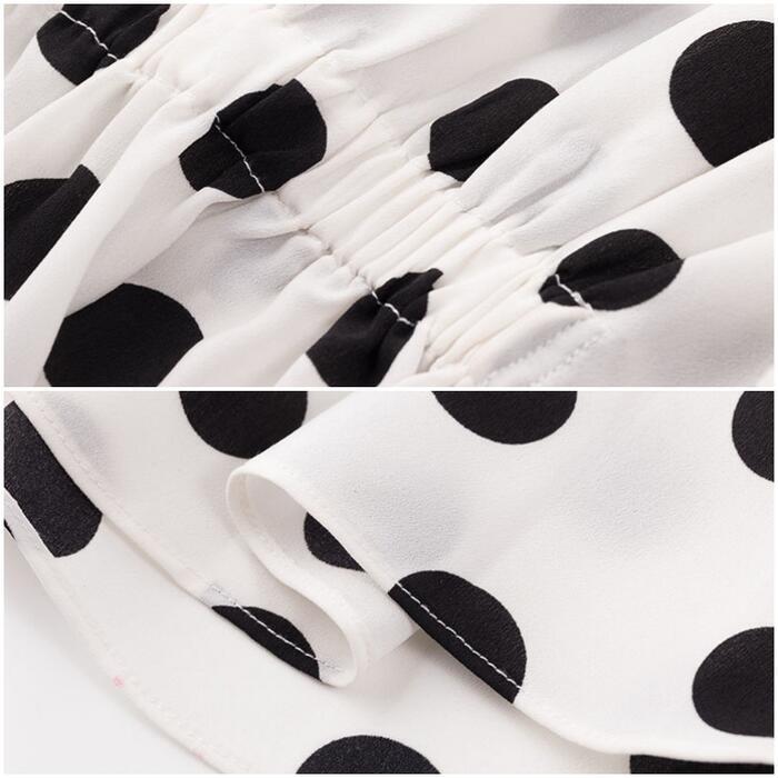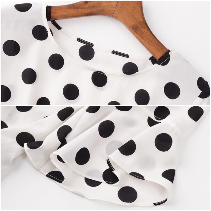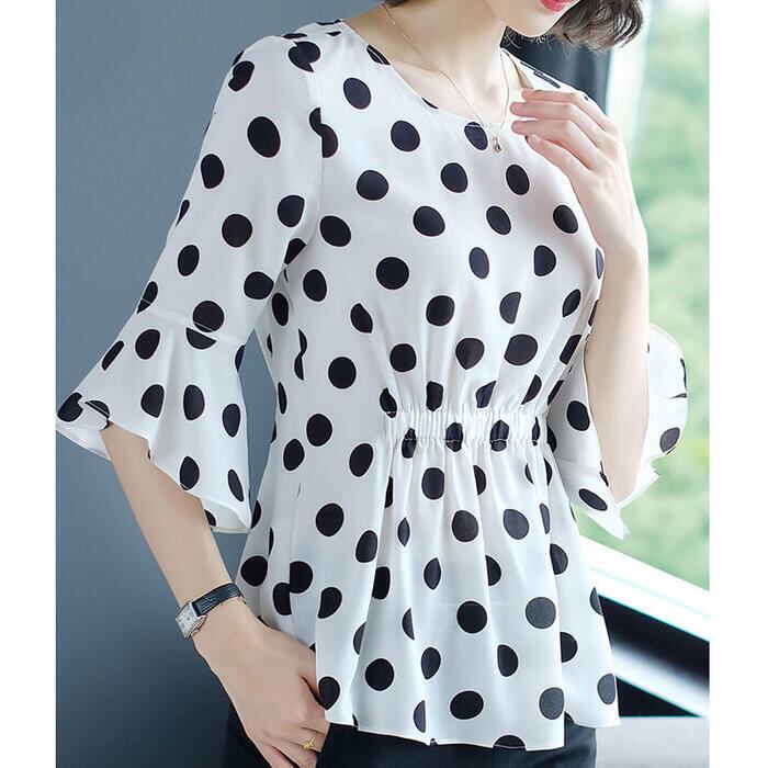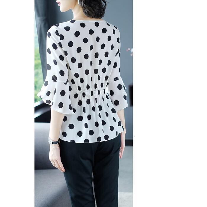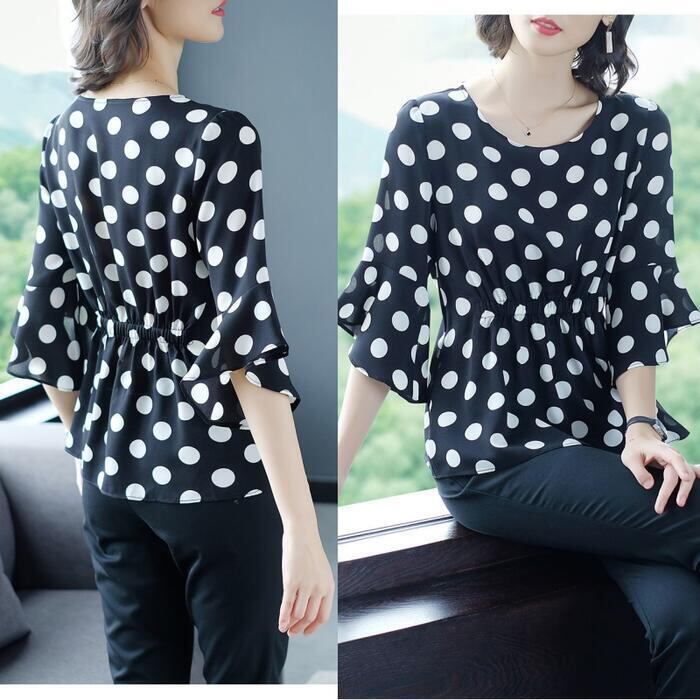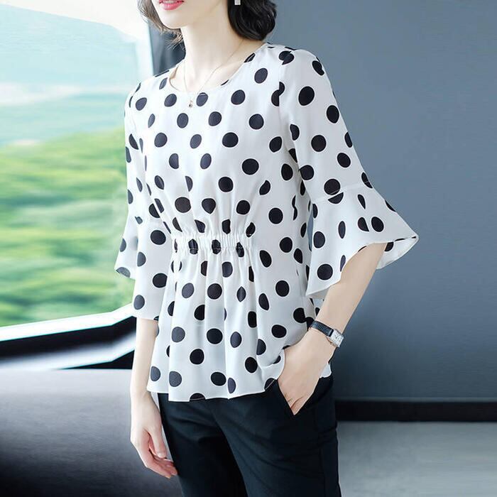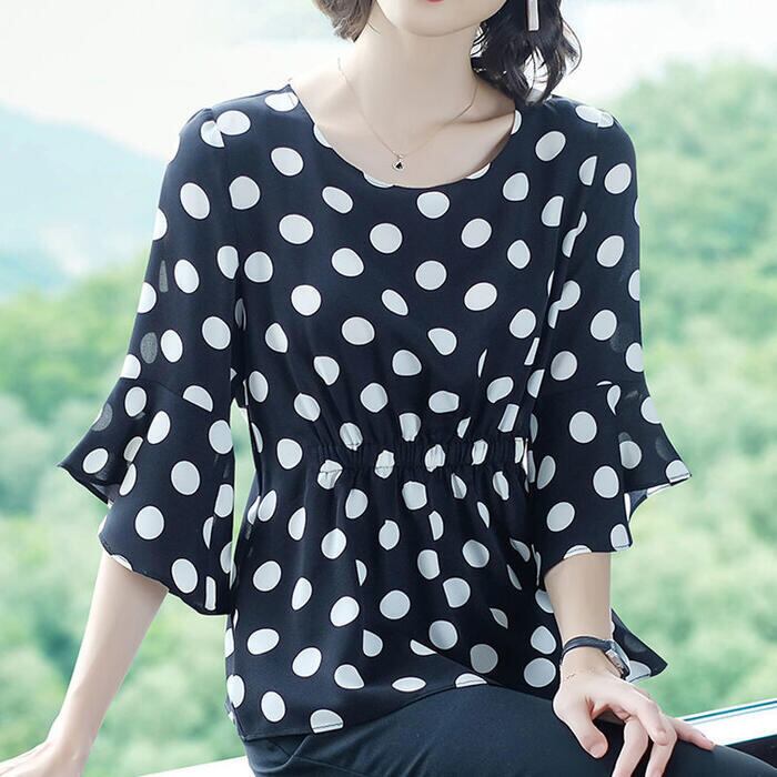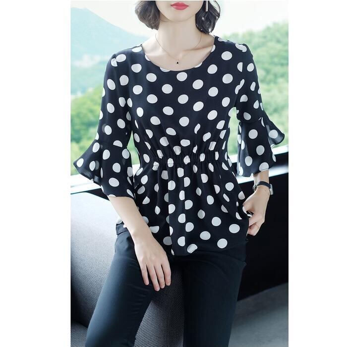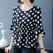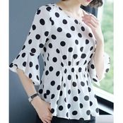 さらりとした生地感で着心地良いドット柄ブラウス。