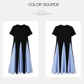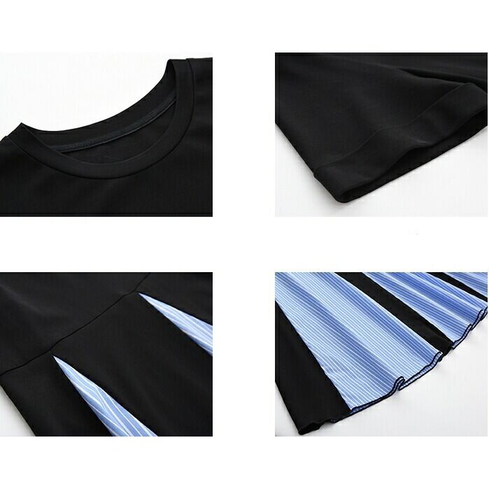 ストライプ生地の切り替えが目を惹くTシャツワンピース。