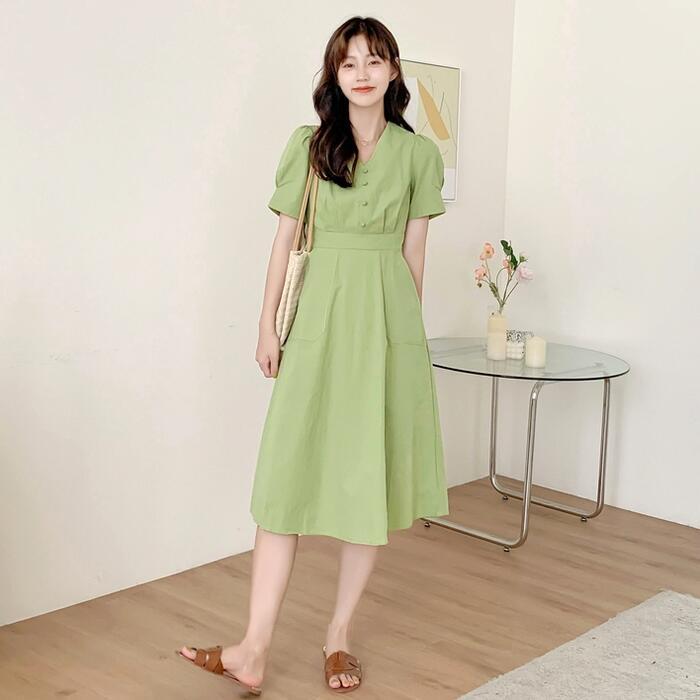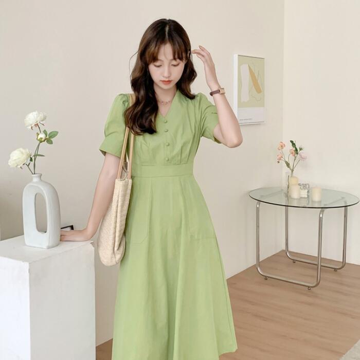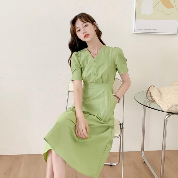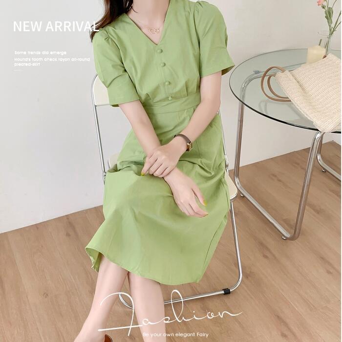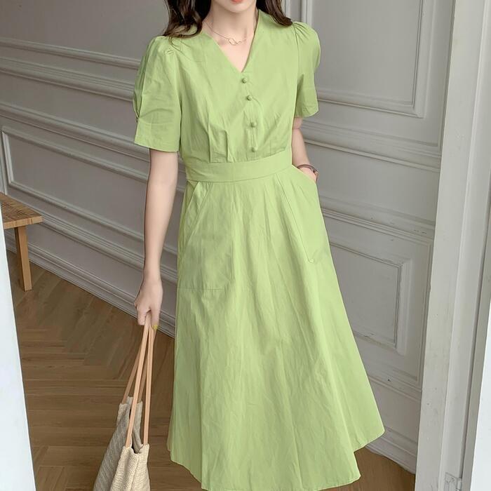 春夏にぴったりな綺麗なグリーンのワンピース。