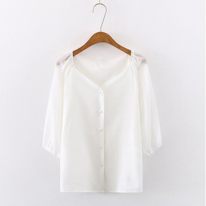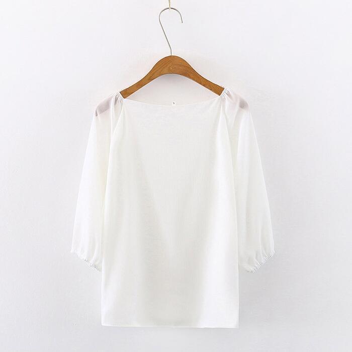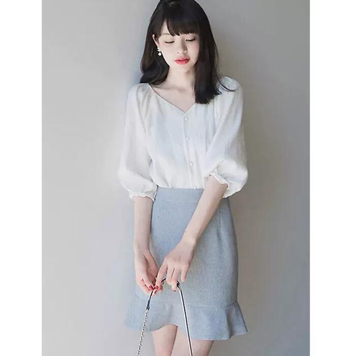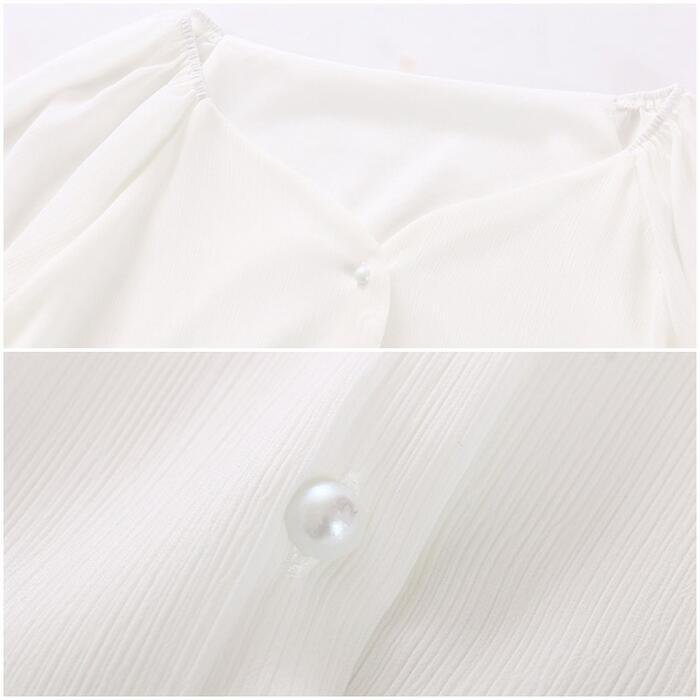大きいサイズパフスリーブ トップス ブラウス シャツ カットソー レディース 五分袖 きれいめ カジュアル エレガント おしゃれ 大人 可愛い フェミニン シンプル シフォン 上品 二の腕カバー ホワイト 白 春 夏 秋 20代 30代 40代 50代