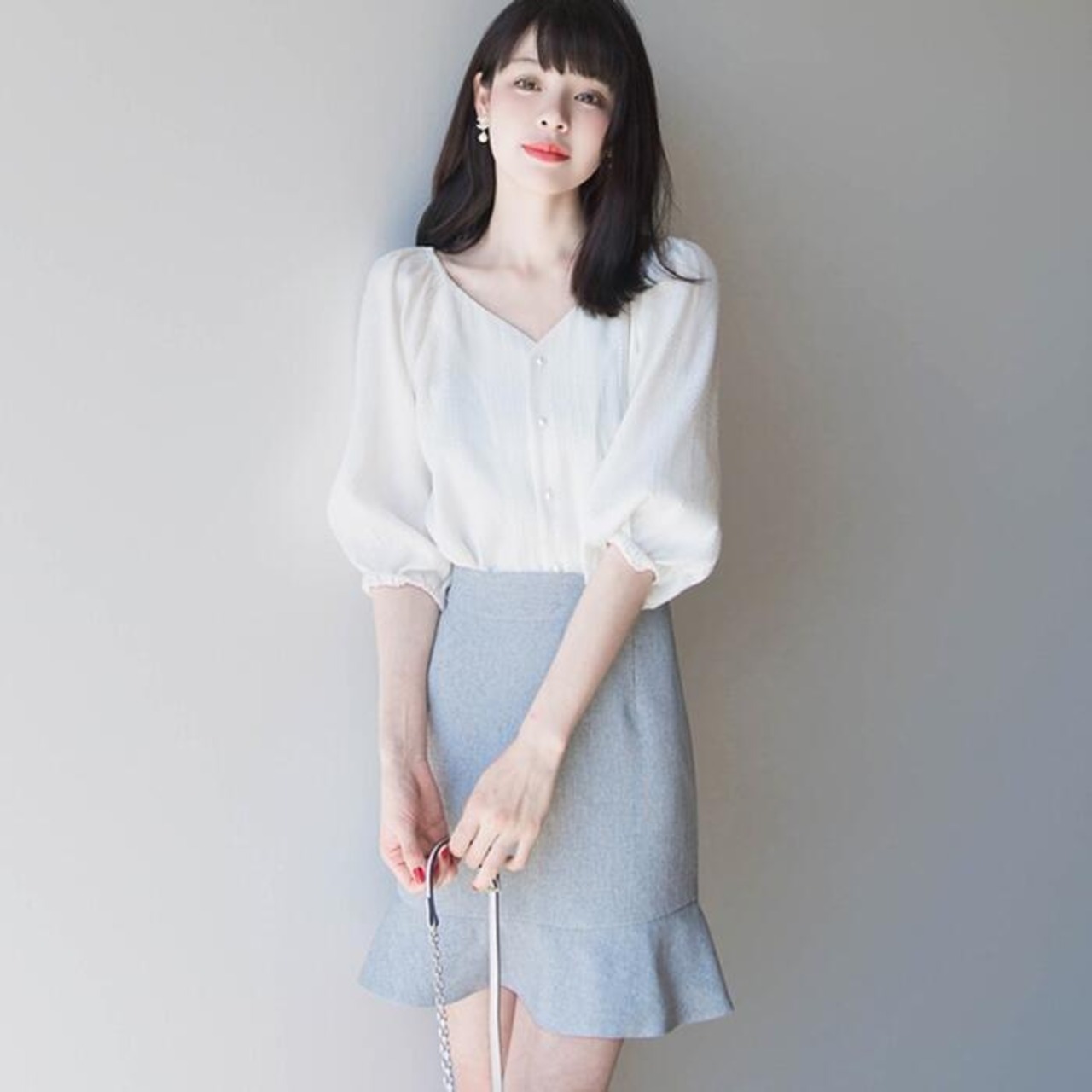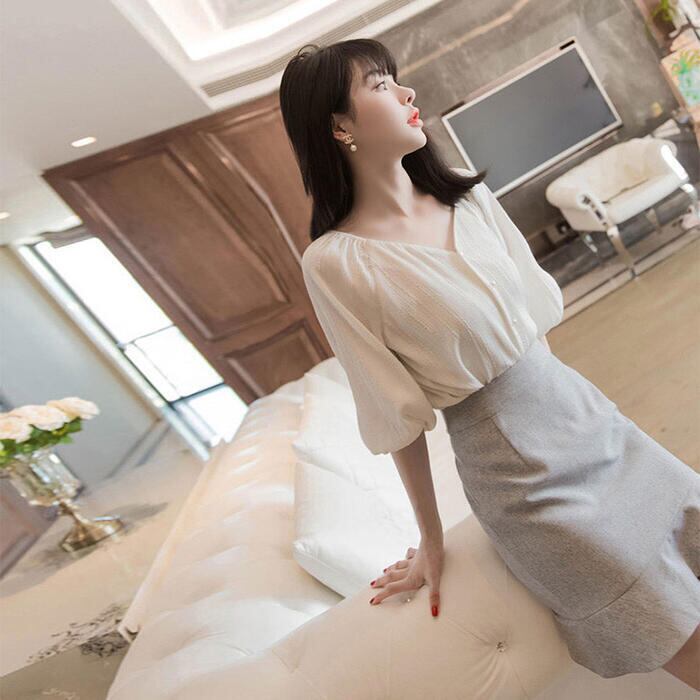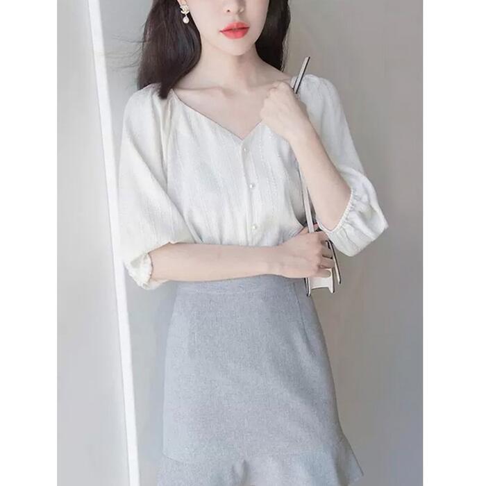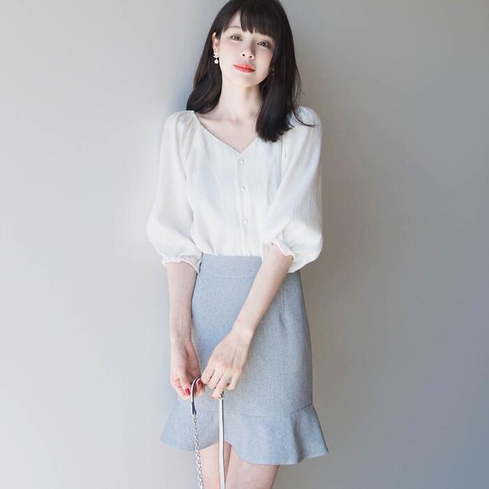 さらりとした生地感で清涼感のあるパフスリーブブラウス。