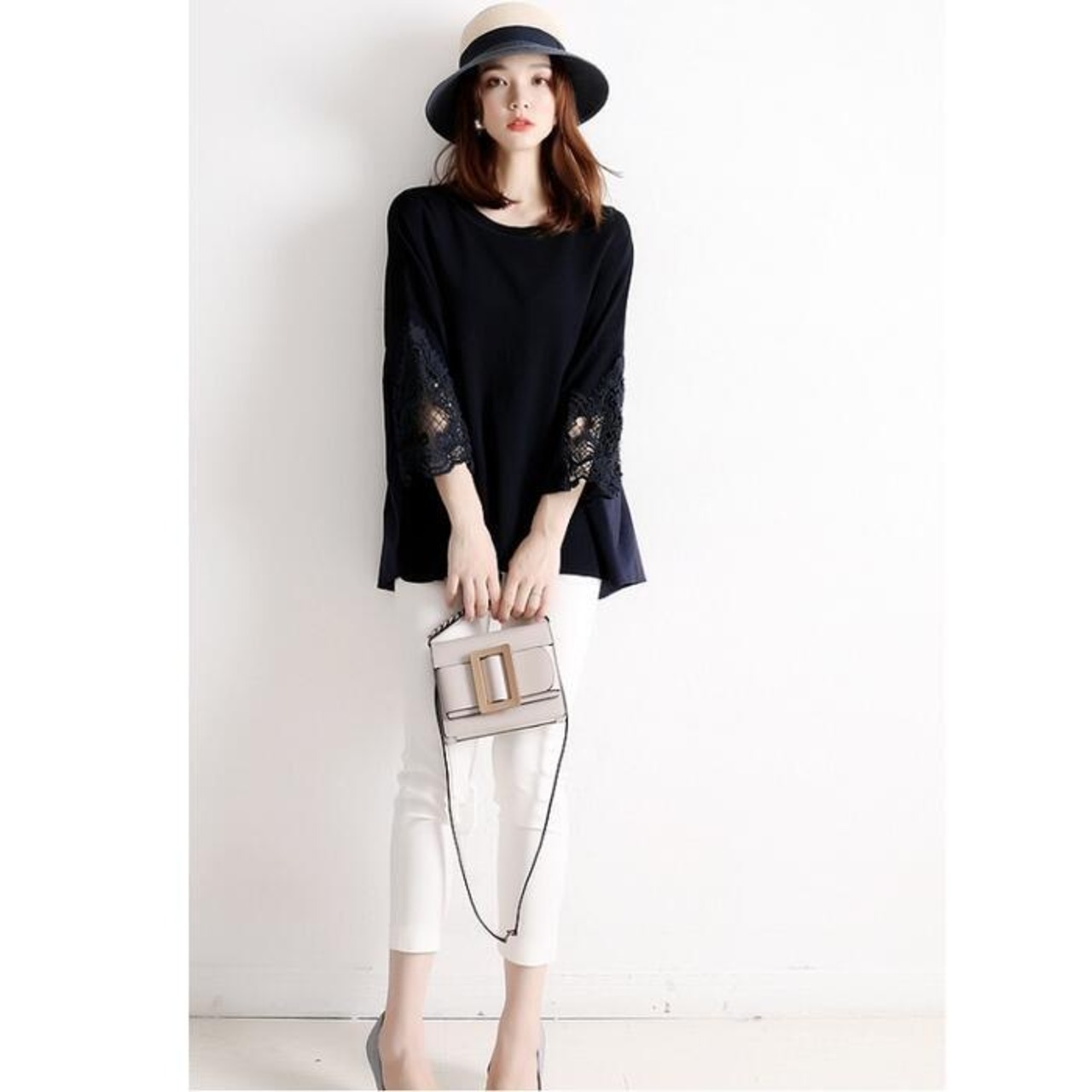 袖口のレースが上品エレガントな印象。