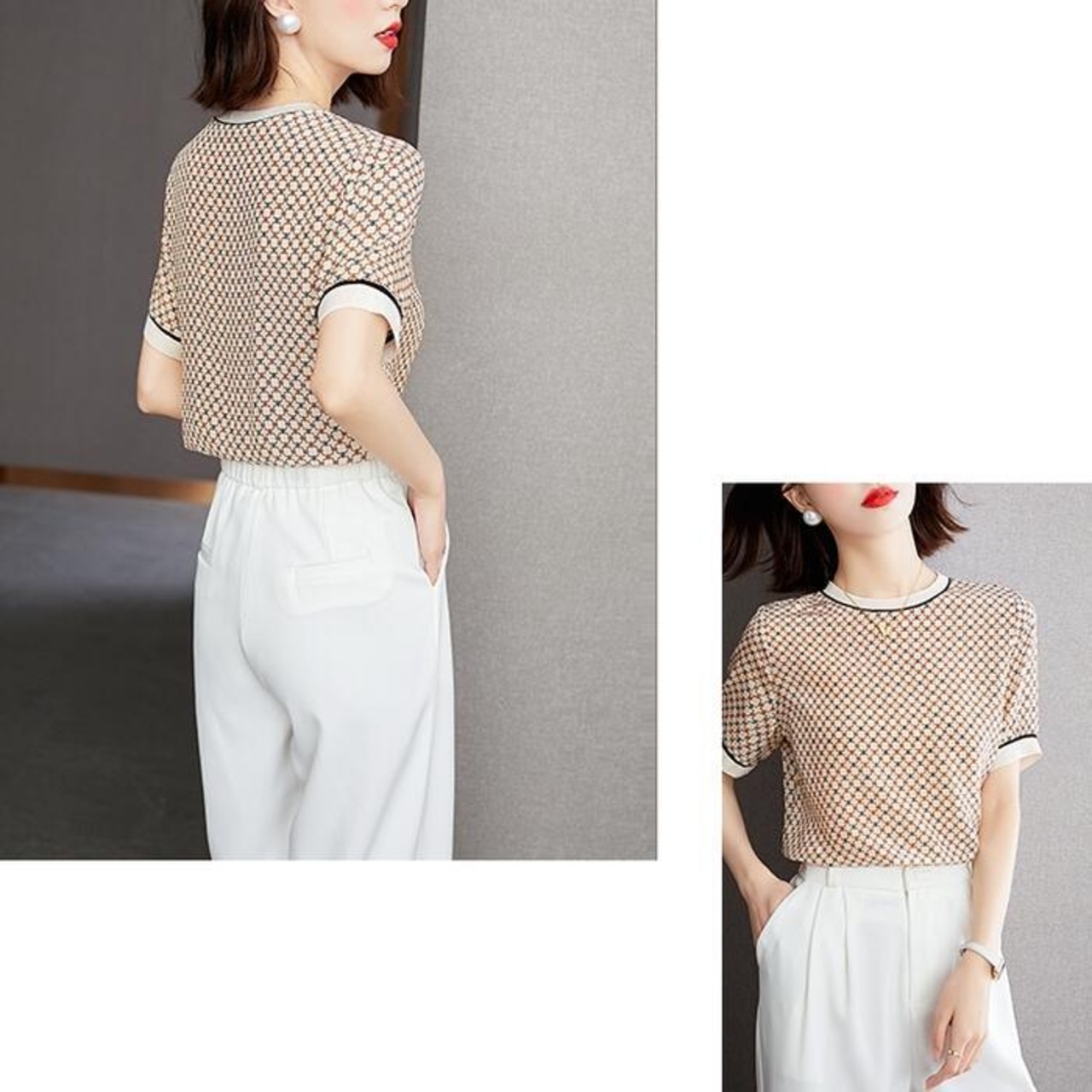 大きいサイズトップス Tシャツ カットソー ブラウス シャツ ジオメトリック レディース 半袖 きれいめ カジュアル エレガント おしゃれ 大人 可愛い フェミニン クルーネック 通勤 かっこいい ベージュ 春 夏 秋 20代 30代 40代 50代