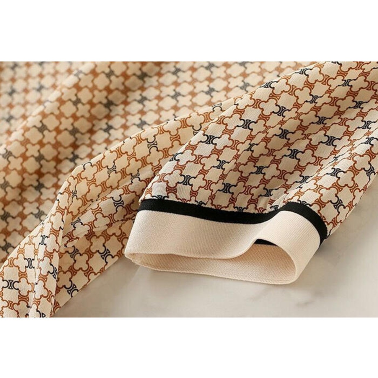 落ち着いたジオメトリック柄がおしゃれな半袖ブラウス。