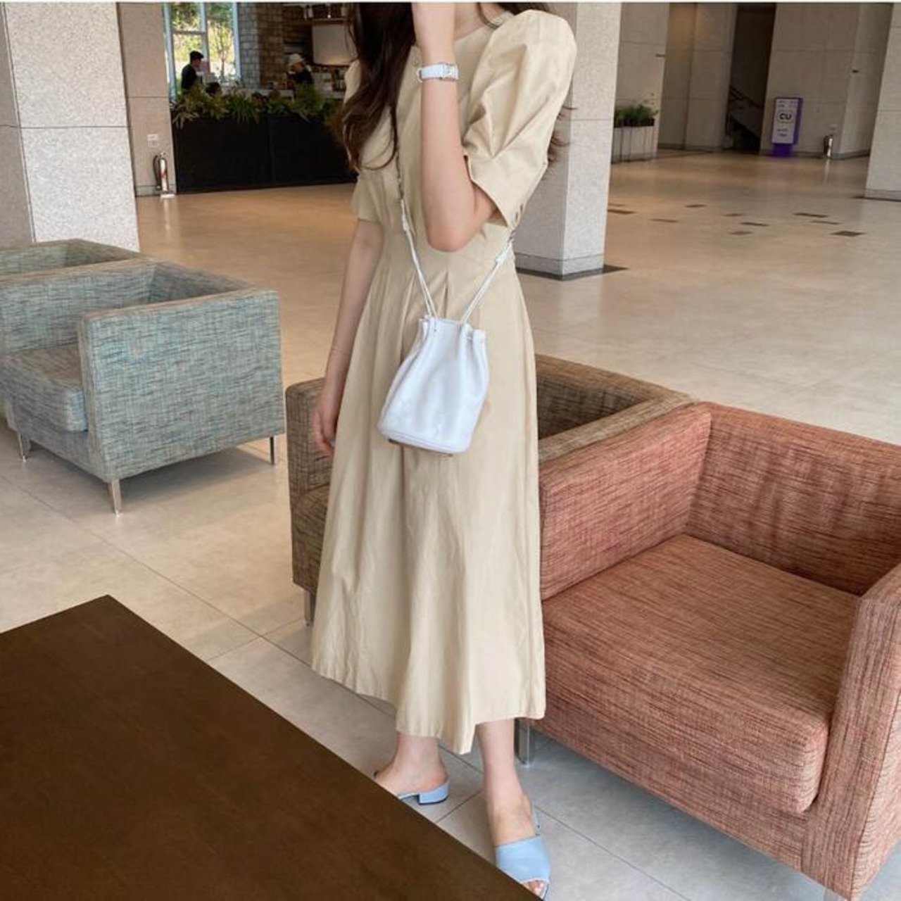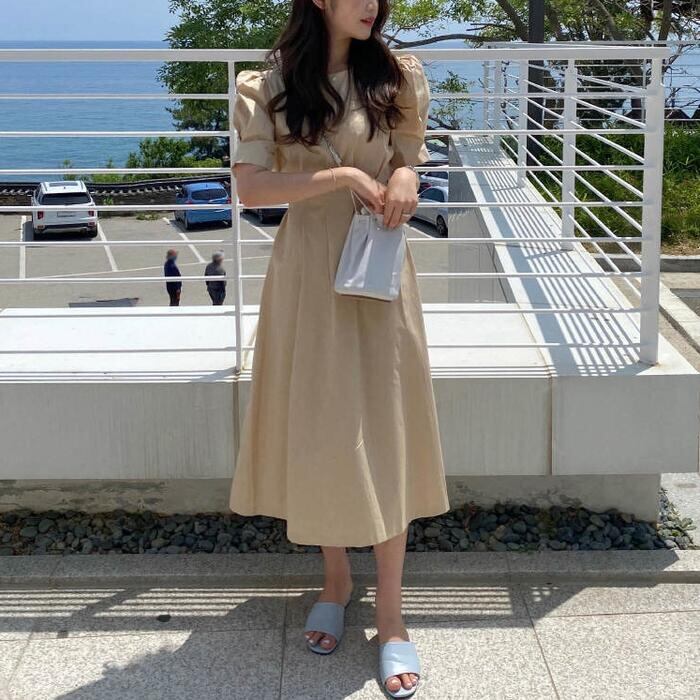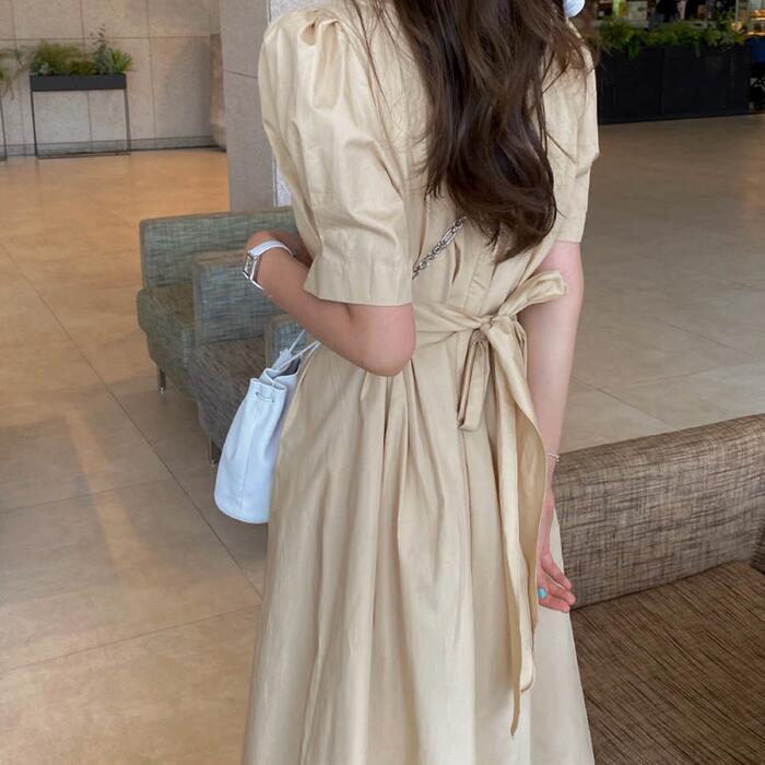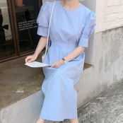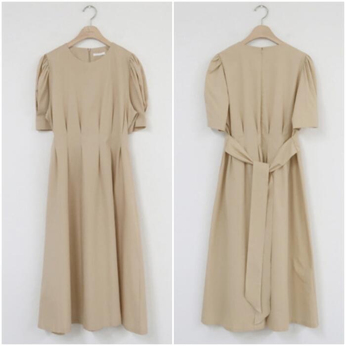 ウエスト部分にタックを入れた美シルエットのワンピース。