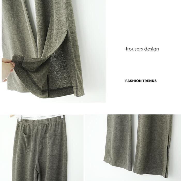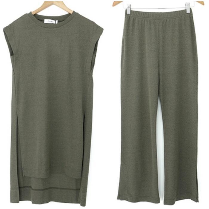 セットアップ 2点セット Tシャツ トップス パンツ 半袖 ロング丈 ワイドパンツ スーツ おしゃれ 大人 可愛い きれいめ カジュアル フェミニン 体型カバー 楽ちん リラックス かっこいい グリーン 緑 春 夏 秋 20代 30代 40代 50代