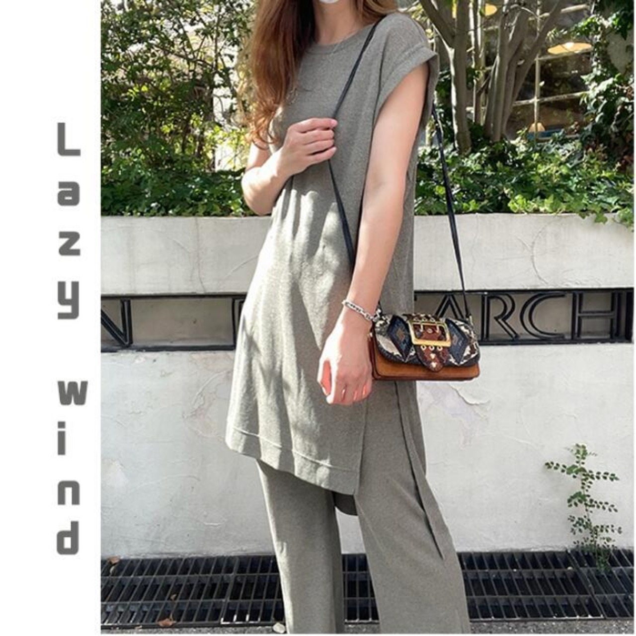 柔らかな生地感でリラックス感のある上下セットアップ。